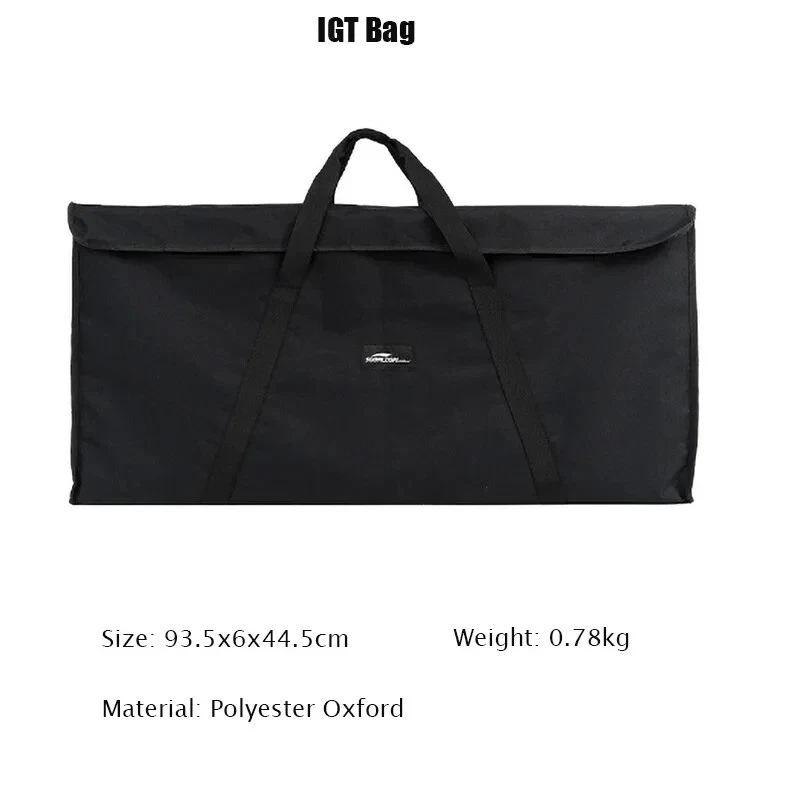 Specification Product Name: IGT Three Unit Framework Product size: 83.5*44*40cm Storage size: 83.5*44*3cm Product material: Aluminum alloy,stainless steel Bearing weight: About 30kg Product weight: about 3.3kg egg roll panel size:76.5*36 egg roll panel weight:1.5kg/2.9kg IGT bag Size: 93.5x6x44.5cm IGT Bag 1: the bag is without partition IGT Bag 2: the bag is with partition Feature 1. A variety of combinations can be used as desired, can be matched with the corresponding specifications of the stove, the splicing is tight and not easy to slip, outdoor barbecue cooking need not worry, is a good helper of camping. 2. Table frame long side guide rail design, can install the gas tank and some tableware or kitchen utensils, etc. 3. The whole table made of aluminum alloy, high strength, light weight, strong bearing capacity, can bear about 30kg. 4. Table plate can be detachable table feet can be folded, after storage does not occupy space, easy to carry. Note Due to manual measurement, there is a tolerance in the product size.