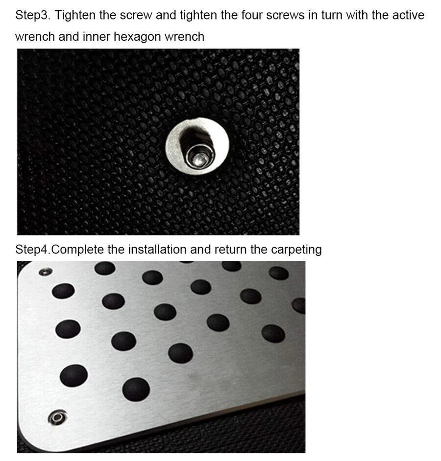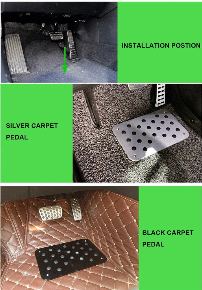 Product Description Universal Aluminum Anti-skid Pedal Pad Foot Heel Scuff Plate Silver Car Floor Mat Non-slip Carpet Patch Interior Accessories 28*16cm Add our listing to Watchlist Or Add to Cart , you will get more discount Specification 1. adaptable model: All Cars 2.Non-slip 3.Aluminium Alloy car pedal,surface brushed treatment & Anodic oxidation process eterior wear-resisting & high grade polypropylene 4.Easy to install 5.Color: Silver 6.Size:28*16*0.2cm Material 1. Aluminum alloy:excellent powerful look, to improve pedal grip, to provide much better anti-slip 2. Wearing proof preservative: to increase foot pedal surface coefficient of friction to enhance driving safety 3. High-quality rubber: with a strong sense of buffering capacity, to make driving easier and let you have good feeling eBay Cross Border Trade powered by ChannelEffect