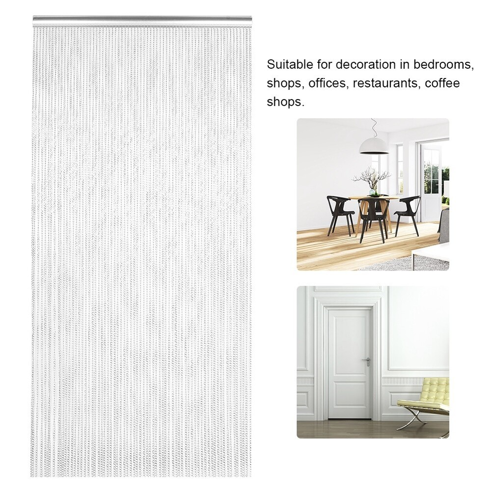Feature: 1. This curtain can effectively prevent insects, mosquitoes, etc. from entering, while maintaining air circulation. 2. Very suitable for decoration in family bedrooms, shops, offices, restaurants, coffee shops. 3. Using high‑quality aluminum chain, is oxidized, and long‑lasting, beautiful and practical. 4. Help to maintain a good ventilation environment, suitable for kitchens, bedrooms, conservatories and other places. 5. Exquisite workmanship, easy to install and disassemble, in line with the decoration style of modern home. Specification: Condition: Brand New Item Type: Chain Curtain Material: Aluminum Color: Silver Weight: Approx. 4250g / 149.9oz Product Size: Approx. Aluminum Chain Diameter: Approx. 1.6mm/0.1in Product Size: Approx. 214.5x90cm / 84.4x35.4in Package List: 1 x Chain Curtain 2 x Installation Screw Note: 1.Please allow 0‑1 inch error due to manual measurement. Thanks for your understanding. 2.Monitors are not calibrated same, item color displayed in photos may be showing slightly different from the real object. Please take the real one as standard.
