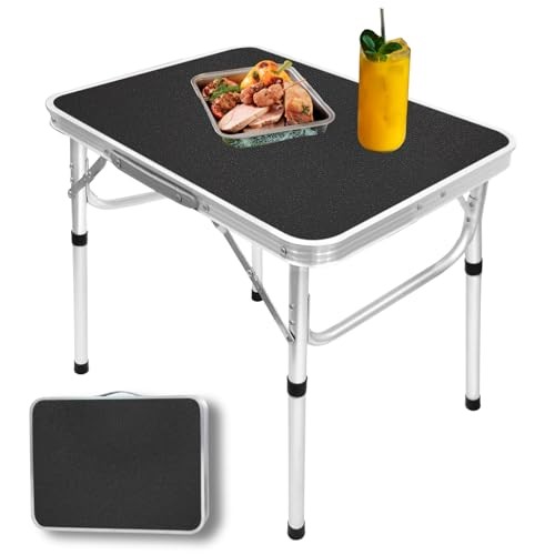 Aluminum Folding Small Table, Adjustable Height Lightweight Portable Black