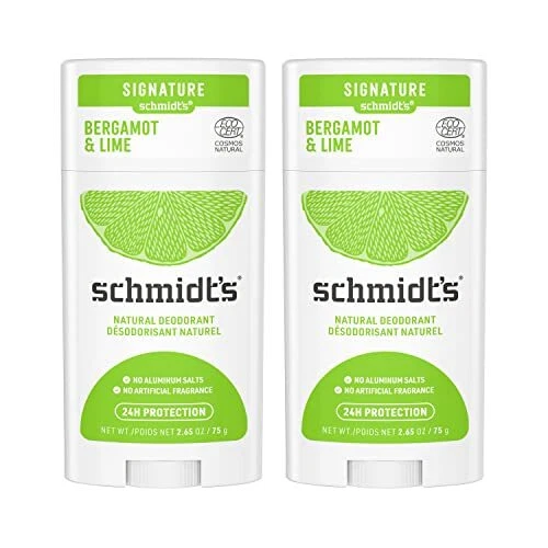 Really Natural. Really Works. Schmidt’s Bergamot and Lime is the first Ecocert Certified Natural Deodorant in the US — Formulated with certified 100 percent natural origin ingredients, this natural deodorant for women and men is made without aluminum, and is certified vegan by Vegan Action and Leaping Bunny certified cruelty-free. Our natural deodorant formula helps neutralize odor and keep you fresh, enriched with magnesium, and offers all-day 24 hour odor protection while being gentle on skin. Schmidt’s is made with plant-based oils and butters like coconut oil, jojoba oil, and shea moisture butter, as well as E. Luxurious, long-lasting scents made with 100 percent natural origin fragrance are never synthetic, always made with plant isolates and essential oils like tea tree oil, jasmine oil, and lavender oil. All of our Schmidt’s natural deodorant sticks require only a small amount of application for great results. To use, hold the product momentarily to skin to soften on with body heat. Gently apply a small amount to dry, clean underarms to keep you feeling fresh all day. 1-2 swipes for application are all you need. The non-greasy and non-sticky feel allows the deodorant to be easily absorbed. Do not apply to irritated, damaged or freshly shaved skin. Really Natural. Really Works. – The First Ecocert Certified Natural Deodorant in the US, Bergamot and Lime helps neutralize odor and keeps you fresh with 24 hour odor protection Certified 100 percent Natural Origin Fragrance – Bergamot and Lime Deo features a fresh, invigorating citrus scent made with essential oils Proven Protection – Whether you're looking for natural deodorant for women or mens deodorant, our award-winning natural deodorants have over 13,000 5-Star reviews! We have a scent for everyone Fights Body Odor – 1-2 swipes is all you need for all-day protection with just a small amount. Hold deodorant stick momentarily to skin to soften on with body heat Plant-Based Ingredients – deodorant without aluminum is formulated to be gentle on skin, using certified 100 percent natural origin ingredients such as odor fighting magnesium and essential oils
