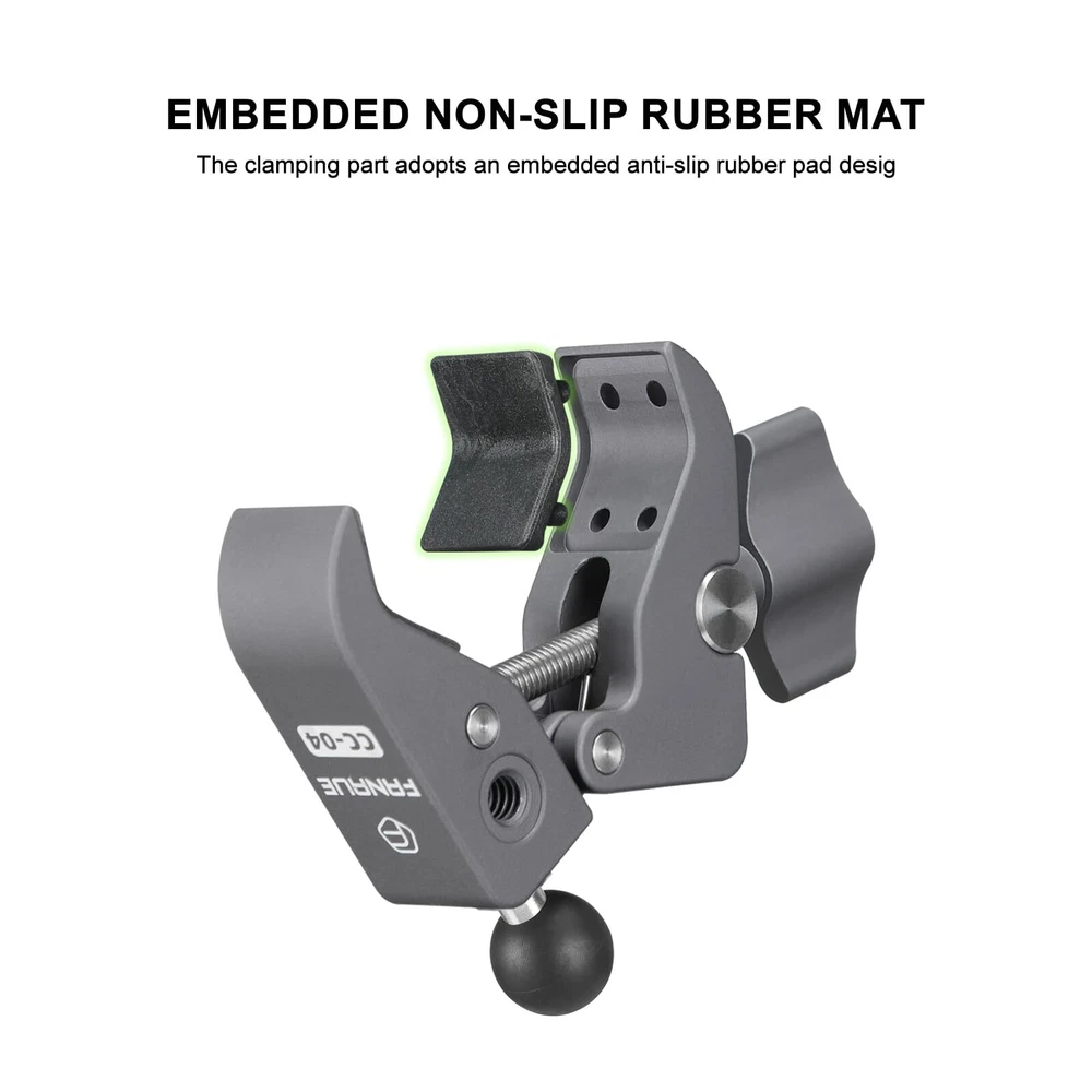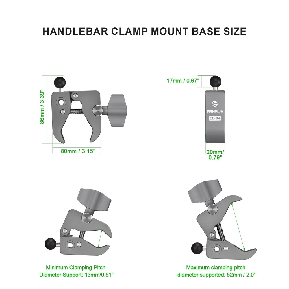 CC-0417 Handlebar base mount strong rod clamp with four 1/4 threaded holes and removable 17mm ball adapter for extended attachment of 1" ball head adapter, one base to mount multiple camera mounts or cell phone holders, with minimum clamping range of 0.5" (13mm) and maximum clamping range of 2.0" (52mm), you can clamp your equipment within that range, great for mounting on airplane yoke, bicycle/motorcycle/stroller/mountain bike/buggy/off-road bike/road bike/golf cart/electric scooter/ATV handlebars, even kayak rails and roll bars, ideal mounting base for cell phone mounts for smartphones, tablets, action cameras, fishing rod holders and more. Handlebar base mount strong rod clamp with 17mm ball head made of aluminum alloy, stainless steel and high quality non-slip rubber, which is more durable and not easy to be damaged, maintains durability and reliability in the most demanding environments, TPU covered molded ball head is non-slip and wear-resistant, it's a good choice for long term use of car cell phone mounts, suction cup cell phone holder, ball holders, bicycle phone mounts, motorcycle cell phone holder and so on. The cell phone mount base compatible with Garmin GPS mounts and 17mm ball head dual socket arms for any device with 17mm ball head adapter mounting pattern, the ball head connect part can be 360° rotated to easily adjust the device to horizontal or vertical orientation, you can use smartphone or Garmin GPS device, even securely attach your camera to motorcycle accessory, enjoy navigating, listening to music, making video calls and more with an ultra-solid, perfect view even at high speeds on rough roads. Brand:SKU:CC-0417 Weight:135g/0.3lb Installation range:0.5"-2.0"(13mm-52mm) Sphere diameter:17mm ball head Compatible with:Garmin GPS mount and 17mm ball head dual socket arm Material:aluminum alloy, stainless steel, high-quality anti-skid rubber Package contains:Handlebar clamp base mount*1 🔥【Powerful function】Handlebar clamp base designed with multiple mounting holes, which can install 17mm ball head and 1" ball head at same time, assemble multiple mobile phone mount or sports camera holders, fits any phone holder accessory with a 1/4 thread, ball head connection part can be 360° rotated, freely adjust smartphone to horizontal or vertical orientation, which is convenient for operations such as playing music, answering calls and map navigation, enjoy perfect view of ride. 🔥【Easy to install】Handlebar base mount strong rod clamp labor saving butterfly knob design easy to adjust cell phone holder tightness, spring loaded construction for quick clamping or unclamping of the device, no need for special tools, just clamp base on the handlebar to fix the cell phone holder, lever clamp minimum clamping range 0.5"(13mm), maximum clamping range 2.0"(52mm), you can clamp your equipment, such as motorcycle handlebars, bicycle handlebars and other sticks, angle ruler etc. 🔥【Compatible with Garmin GPS mount】17mm ball handlebar clamp mount base compatible with Garmin GPS mount and 17mm ball double socket arm, suitable for any devices with 17mm swivel ball mounting pattern, great for mounting on airplane yokes, pram/mountain bike/buggy/cross-country bike/road bike/golf carts/electric scooters/ATV on handlebars, and even kayak rails and roll bars, ideal mounting base for smartphones, tablets, sports cameras, fishing rod holders ect cell phone holders. 🔥【Aluminum alloy material】The main body of handlebar clamp mount base is made of 6061-T6 aluminum alloy, which can maintain durability and reliability in the most demanding environments, surface has been treated with class III hard anodic oxidation, solid stainless steel ball head is covered with high-quality anti-slip rubber, which plays well protective role for ball, it's a good choice for long-term use of quad lock motorcycle mount, ball mounts, handlebar phone holder. 🔥【Lifetime Warranty】The handlebar clamp mounting base comes with lifetime warranty, if you have any questions about the product, please contact us in time, we will provide you with the best solution within 24H. Whether you're riding beginner or riding enthusiast, this handlebar clamp mounting base can fulfill your need to free your hands, delicate and simple design makes it can be Christmas gift for your friends. Bring them surprise and fun on riding!