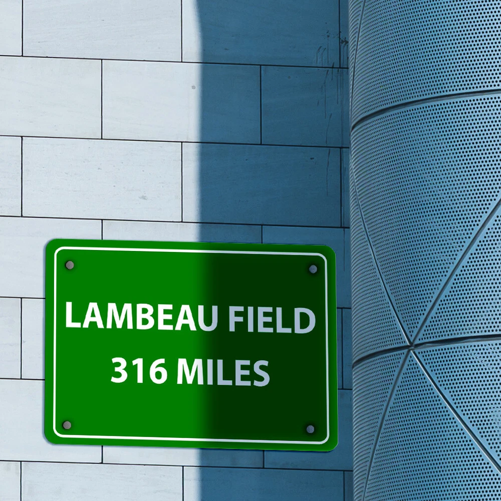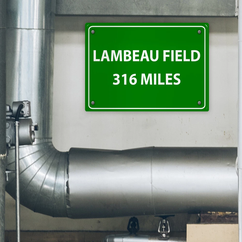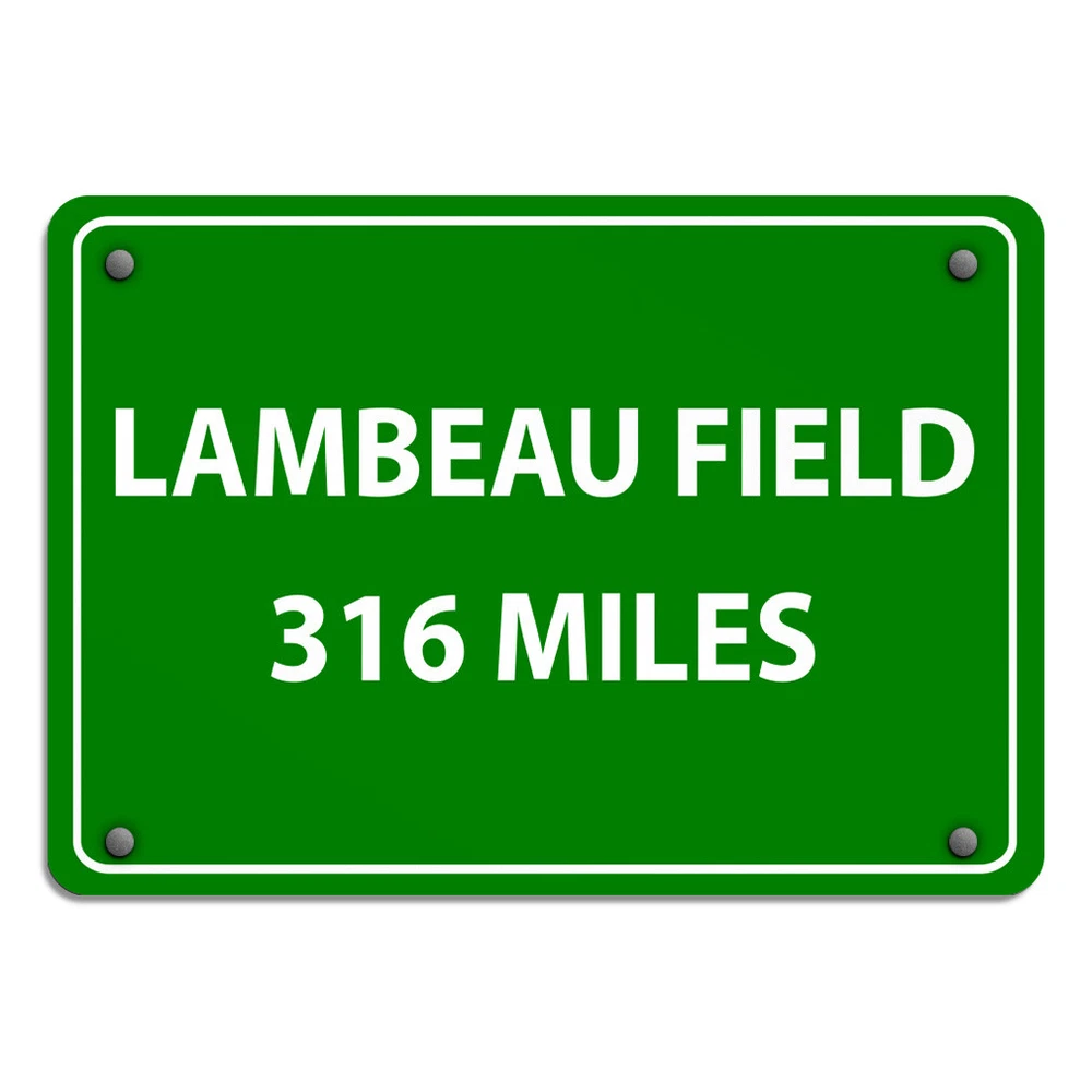 Aluminum Horizontal Metal Sign Lambeau Field 316 Miles Traffic Green Road
