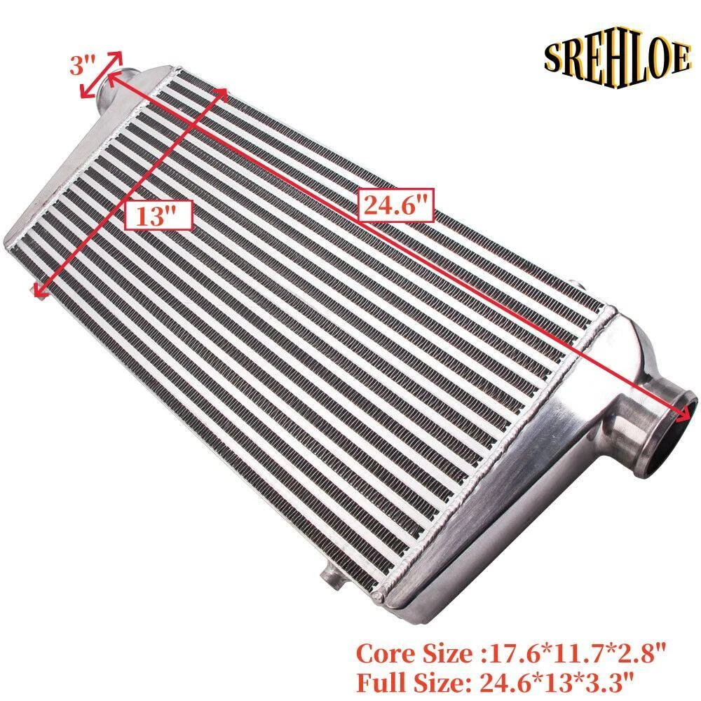 Specification: Part Name: Intercooler Material: Aluminum Inlet / outlet Size : 3'' Core Size : 17.6*11.7*2.8" Full Size: 24.6*13*3.3" Quantity: 1 piece Warranty: 1 Year Condition: 100% Brand New Applaction: Universal (Please take correct measurements to make sure it will fit in the location) Package Includes: 1 x Universal Intercooler Shpping: Recommendations to International Buyers: Import duties, taxes and charges are not included in the item price or shipping charges,they are responsible by buyers. All orders with its payment cleared will be shipped within 2 work days.please advise your phisical address and phone NO.. Shipping carriers will be different depends on special needs,if you have special request,please contact us. Tracking numbers will be updated on eBay as soon as they are created and processed All order will shipped out from our USA warehouse for USA buyer. Delivery time is 3-10 Business days. No shipping on weekends and holidays. Return: Please contact us before return your item,we will send you correct return address. All returns must be packed securely for shipping and the tracking number must be provided via your eBay return request or message. Any lost or damage during shipping back are covered by buyer. Contact US: Please take photos immediately if you find the package or item damaged. The best way to contact us is by eBay messages. We always reply eBay messages that are sent to us with an inquiry, usually within 24 hours of receipt or sooner. Although we are trying our best , there could be small issues like wrong or defective item sent or damaged during transit or item not as described. Please do not hesitate to contact us and we will work with you for a reasonable solution.