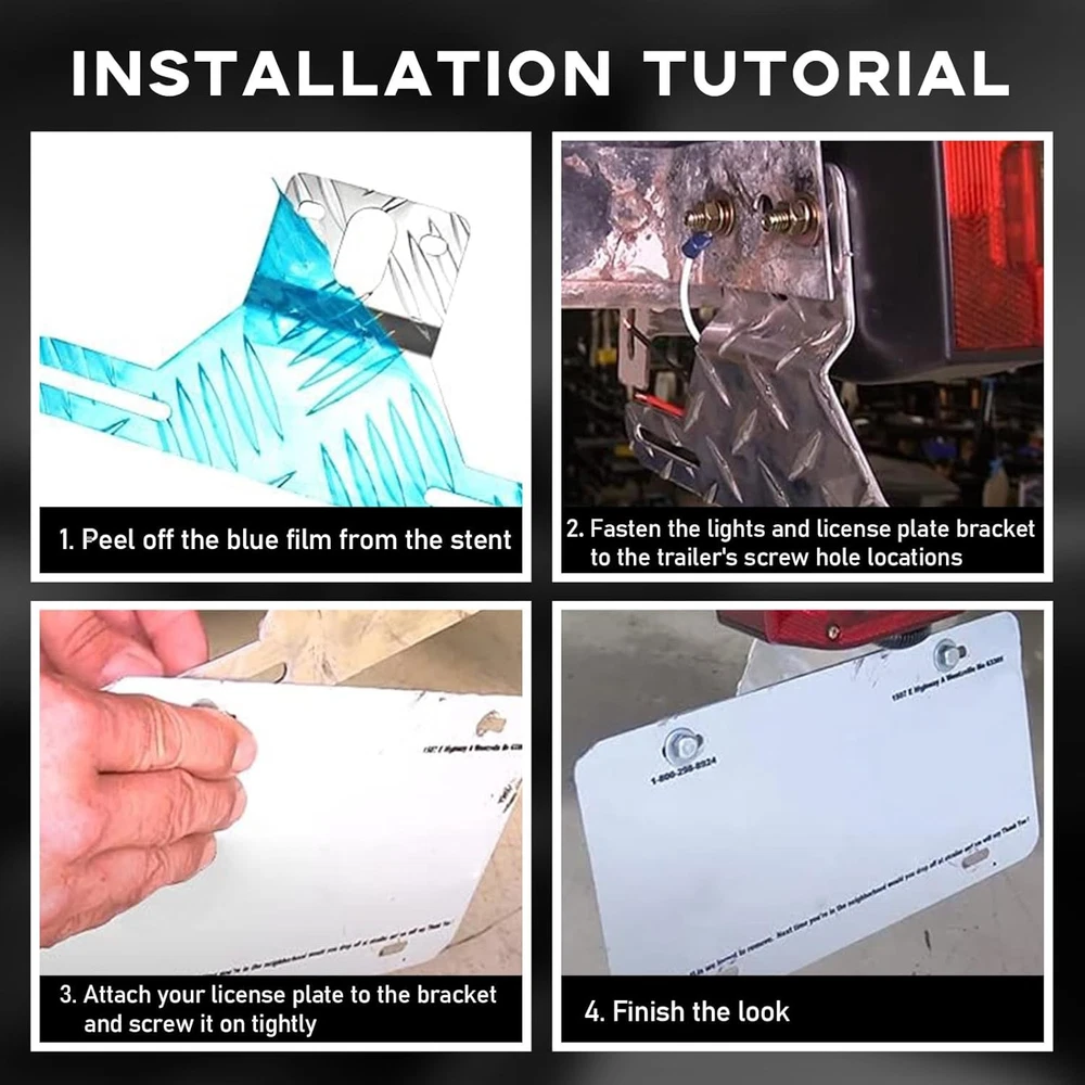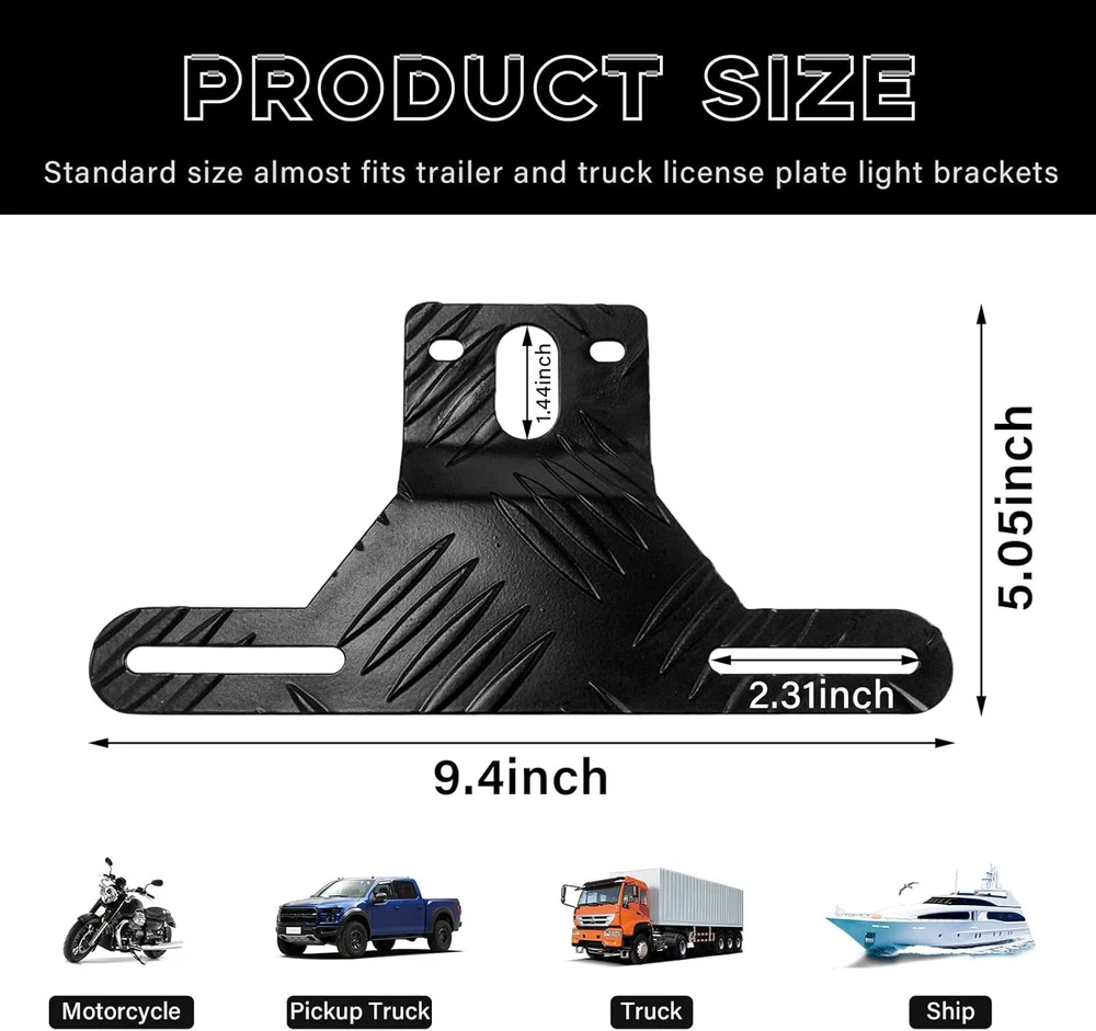 Aluminum Trailer License Plate Light Bracket, Auto Holder Black Product Details Color: Black Brand: Gasedin Vehicle Service Type: Vehicle Product Dimensions: 9.4"L x 5.05"W Finish Type: Polished Manufacturer: Gasedin Model: Trailer License Plate Light Bracket Item Weight: 1.76 ounces Item model number: Trailer License Plate Light Bracket Manufacturer Part Number: Gasedin-2392TL Color: Black Brand: Gasedin Vehicle Service Type: Vehicle Product Dimensions: 9.4"L x 5.05"W Finish Type: Polished MaterialFit Type: AluminumUniversal Fit 【Excellent Quality】: This trailer license plate light bracket is made of sturdy aluminum, not easy to break or deform, which is durable. It has a polished surface, so it's resistant to wear and scratch, and won't affect the aesthetics. It is anti-corrosion and anti-rust, suitable for various working environments and weathers. 【Practical Function】: It is used to connect the car license plate and license plate light so that the license plate light can illuminate your license plate smoothly. It also allows the license plate and license plate light to be mounted more firmly, avoiding vibration and producing noise. 【Aesthetic Design】: The license plate holder is designed with geometric diamond pattern, which is full of personality and fashion. With its polished metal finish, it can also bring a unique and shiny look to your trailer and truck, making it an ideal exterior modification decorative accessory for your car. 【Quick Installation】: First, remove the license plate and rear lights, then remove the original license plate bracket. Second, tear off the blue film on the outside of the new license plate bracket, align the screws on the rear lights and fix the license plate bracket. Finally, install the license plate and fix it. 【Widely Used】: It is an ideal replacement for the ordinary plastic bracket. It is universally applicable to most trucks, trailers, boats, transporters, construction vehicles, snowmobiles and so on. It can even be used in kitchenware storage, clothing displays, supermarket shelves and more. Specification:Material: AluminumQuantity: 1 PCSColor: Black/ SliverWeight: 0.16 lbSize: 9.4×5.05 inchesFeature: Practical, Durable, RustproofFit Type: Universal FitMore details:-It has rounded edges and corners, so it won't scratch your hands when you install it.-Crafted with one-piece molding process, it has no welding points, and the overall structure is more solid.-The reserved light hole position is more convenient for you to assemble.