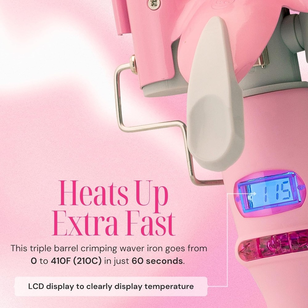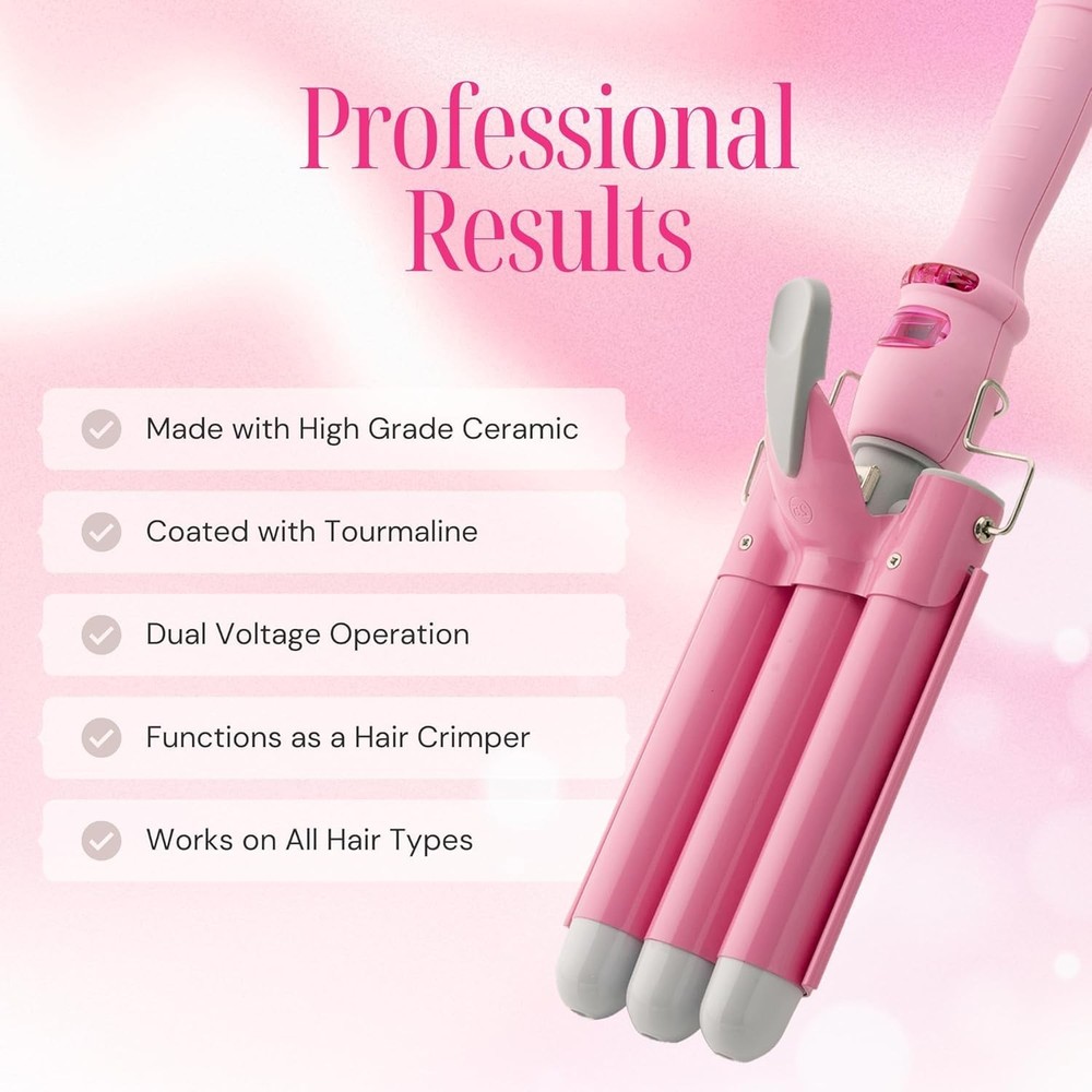 Effortless styling meets cutting-edge technology with Alure's Hair Waver/Crimper, designed to simplify your hair care routine. The LCD temperature display ensures precise control, while the 360-degree rotatable cord, non-slip handle, and insulated barrel tips prioritize safety for a worry-free styling experience. Rapidly heat up from 0 to 210°C in just 60 seconds, reducing styling time significantly. The intuitive buttons and LCD screen make temperature adjustments a breeze, catering to various hair types. Crafted for longevity, the three-barrel hair waver features premium ceramic barrels, ensuring durability through countless styling sessions. Lightweight and dual voltage (110V-220V), it's your versatile travel companion. Experience luxurious waves without frizz, thanks to the innovative 3-barrel design and heated ceramic emitting negatively charged ions for a quick, shiny finish. Achieve personalized results, though individual outcomes may vary based on hair type or volume. Trust in Alure, the trusted brand for innovative styling tools, to meet your distinct styling needs. WORKS ON ALL HAIR TYPES: Whether you have short or long locks; thick or thin, this three barrel curling iron works like a charm. The heated ceramic produces negatively charged ions that create soft, shiny waves without any frizz. And unlike single barrel styling irons that take ages to curl hair, this 3 barrel curling iron does it in a matter of minutes.