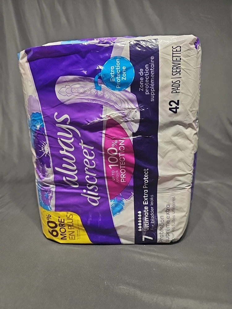 Assembled Product Dimensions (L x W x H):8.31 x 5.63 x 10.95 InchesType:Incontinence PadsBrand:Always DiscreetUPC:037000810254Assembled Product Weight:2.14 lbScent:UnscentedAbsorbency:Super Plusgtin13:037000810254Features:Leak ProtectionFit Type:Universal Fit