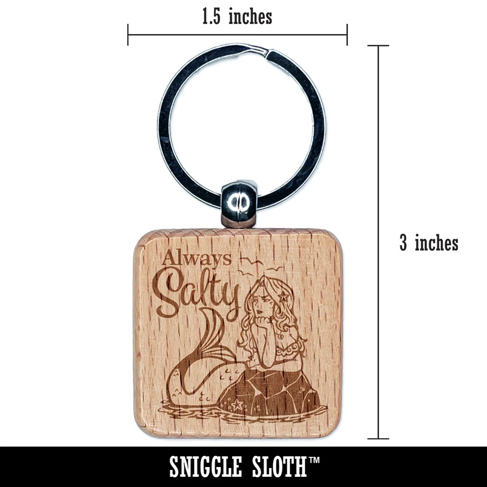 Always Salty Grumpy Beautiful Mermaid Engraved Wood Square Keychain Tag Charm