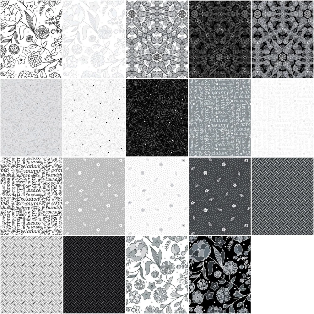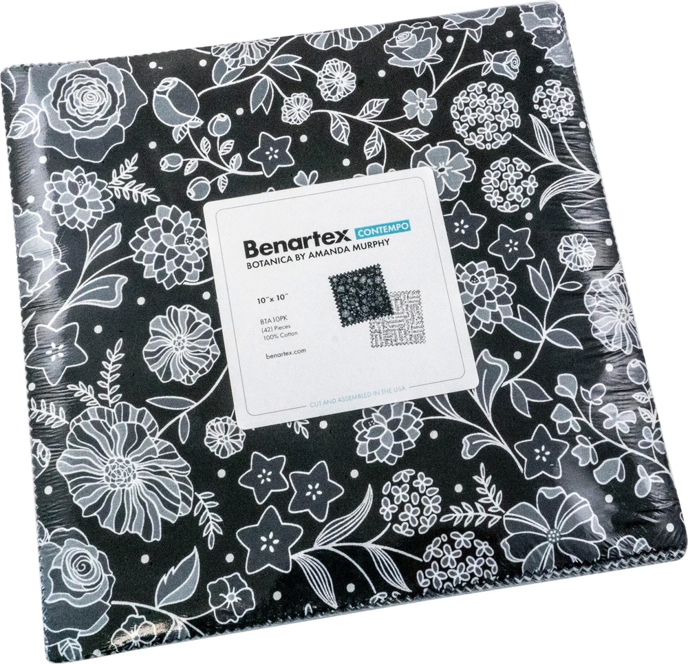 Fabric bundle of 42 10-inch squares from the Botanica collection by designer Amanda Murphy for . A modern interpretation of the wonders of nature, Amanda Murphy’s Botanica is quite simply stunning. The dynamic prints are beautifully balanced in both scale and value, and the sophisticated monochromatic palette of grey, black, and white will have wide appeal. Use this contemporary collection on its own or in conjunction with colorful basics like Cotton Shot. 10 inch by 10 inch cotton fabric squares for quilting. 42 Individual fabric squares, 100% cotton quilt fabric.