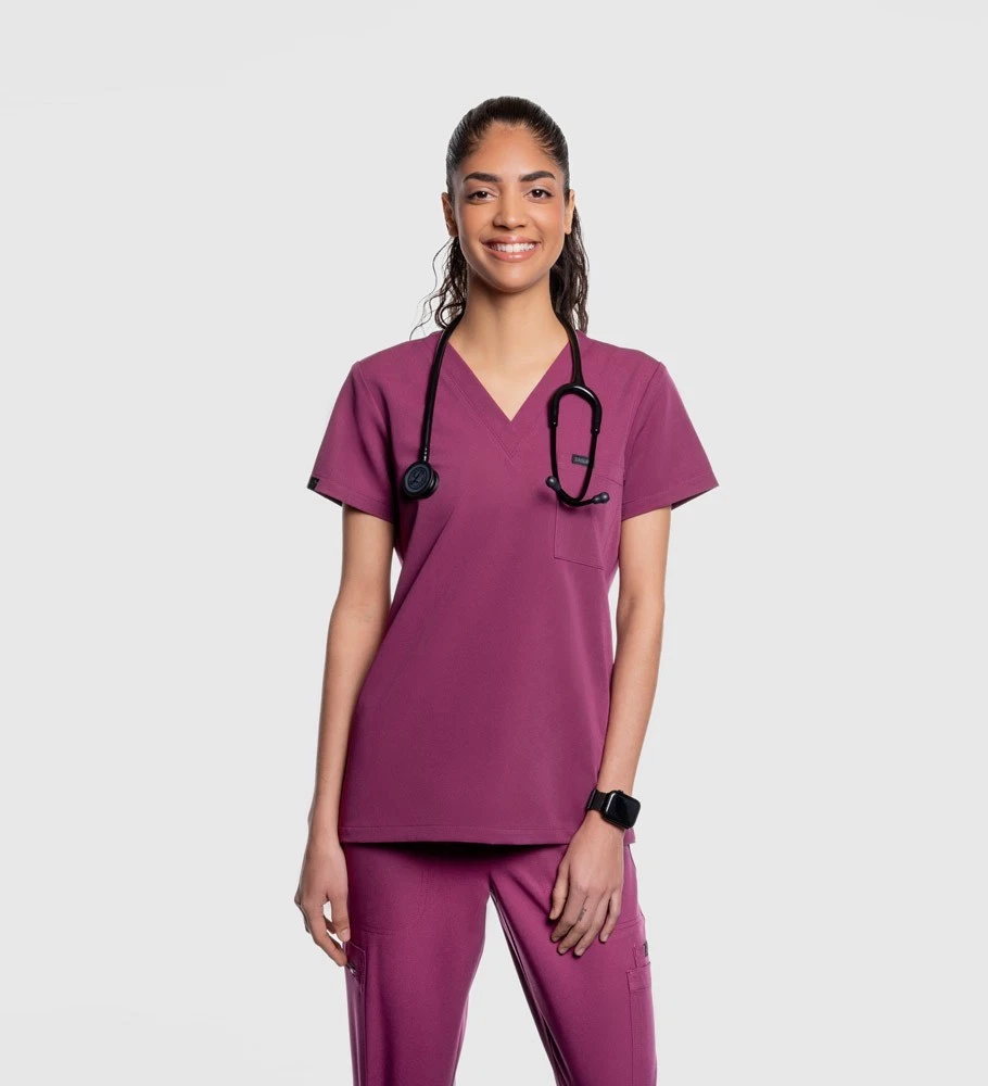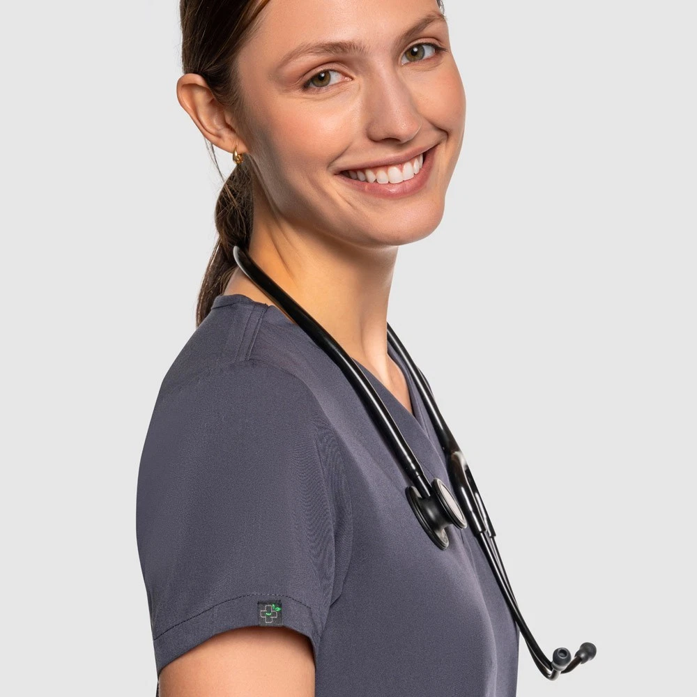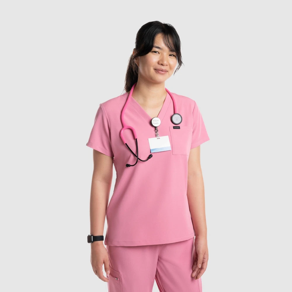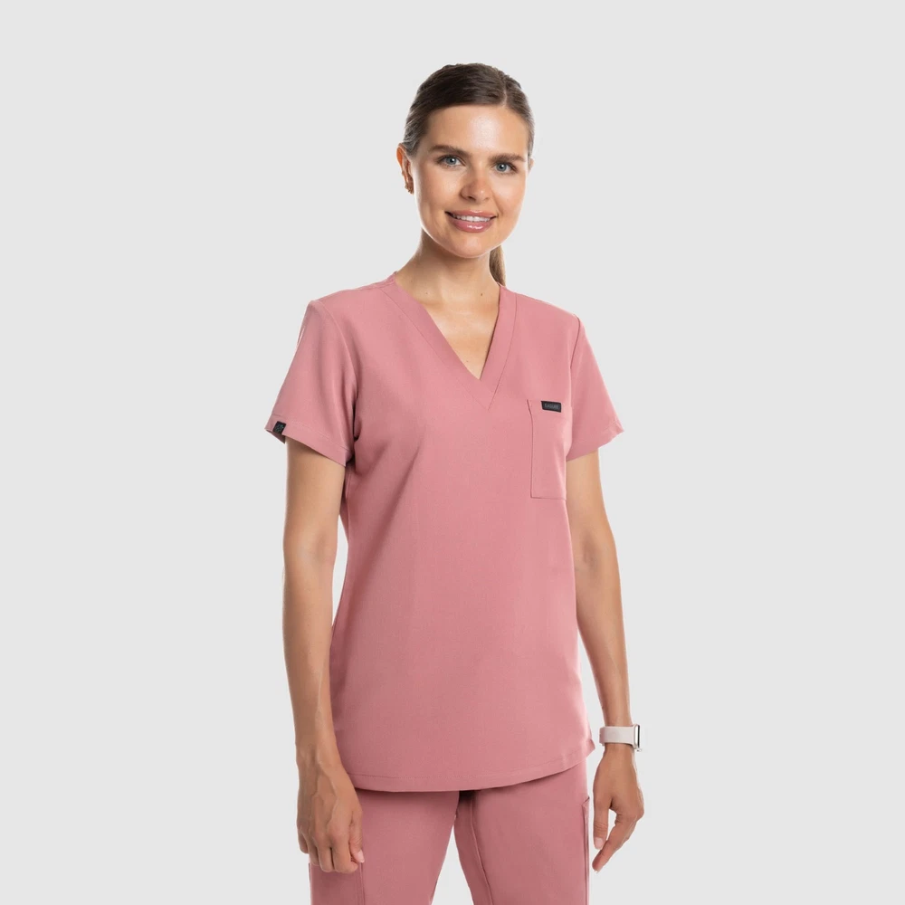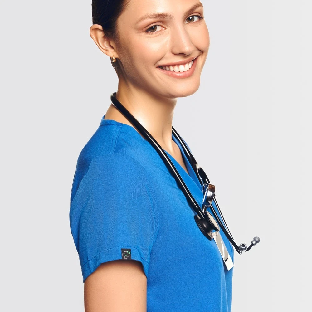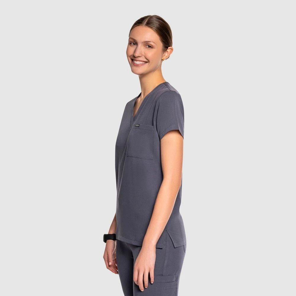 The Amara 1-Chest Pocket Women's Scrub Top by Easure is a stretchy medical uniform top designed for women. Made of polyester, rayon, and spandex, this V-neck top features a solid pattern and a convenient chest pocket. Perfect for medical professionals looking for comfortable and functional work clothing. Stay comfortable and professional with the Amara Women’s V-Neck Scrub Top, designed for performance and everyday wear in medical environments. Crafted from a premium polyester, rayon, and spandex blend, this scrub top provides excellent stretch, breathability, and ease of movement. The flattering V-neck silhouette delivers a modern look, while the functional chest pocket adds practical storage. Wrinkle-resistant fabric helps you stay neat and confident throughout your shift, making this scrub top a dependable choice for busy professionals. Perfect for hospitals, clinics, nursing homes, and healthcare settings