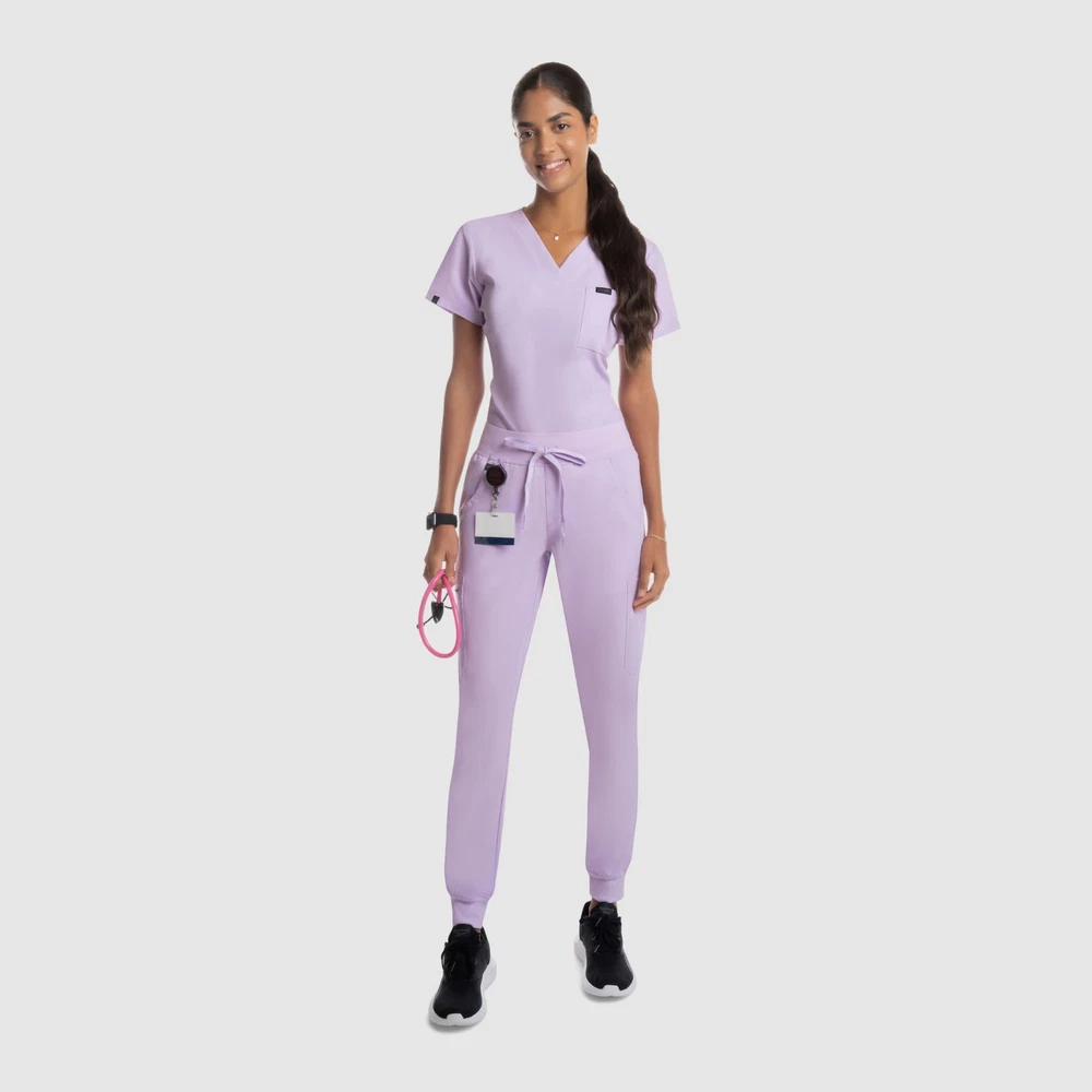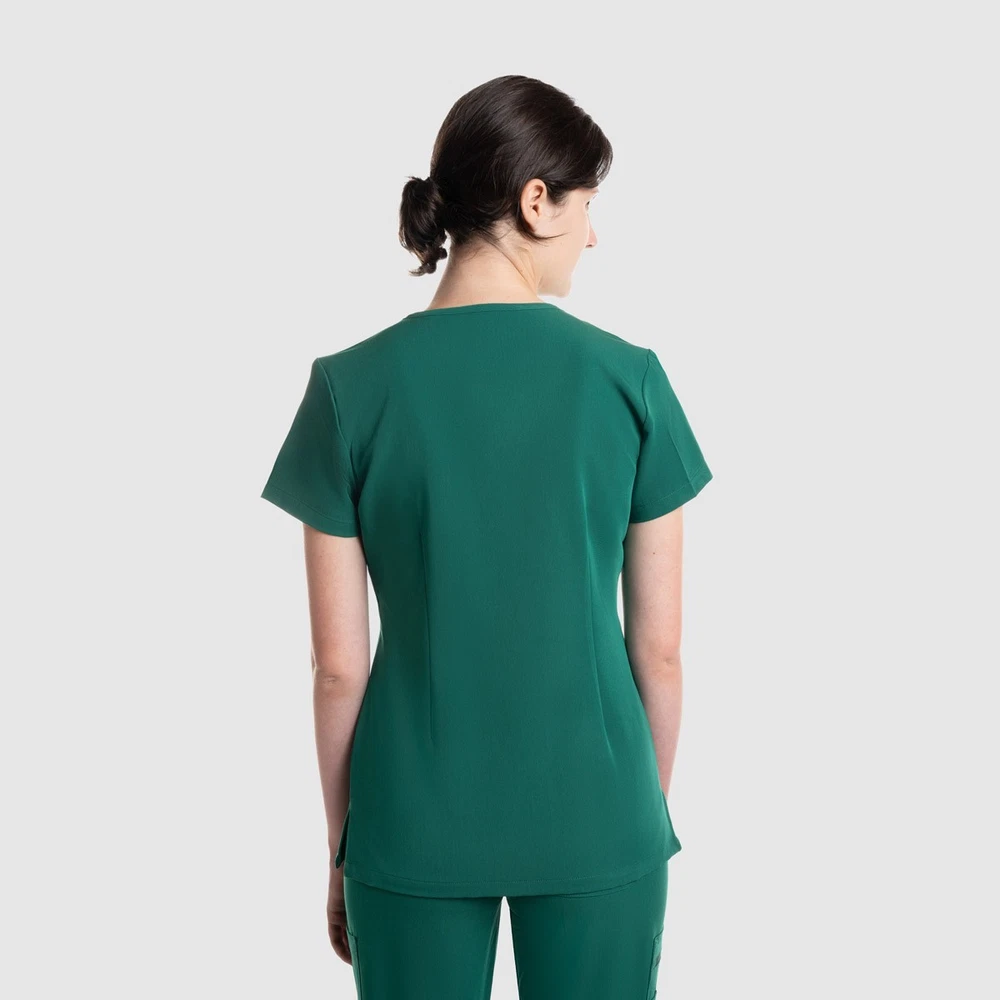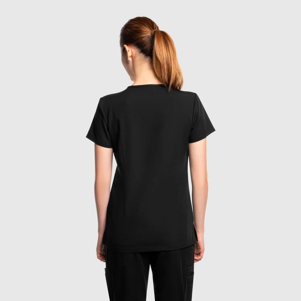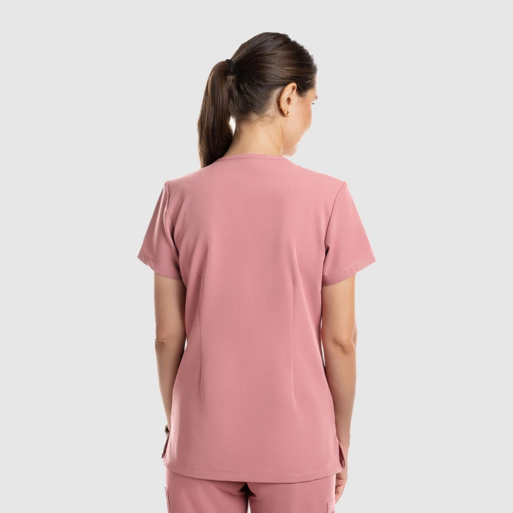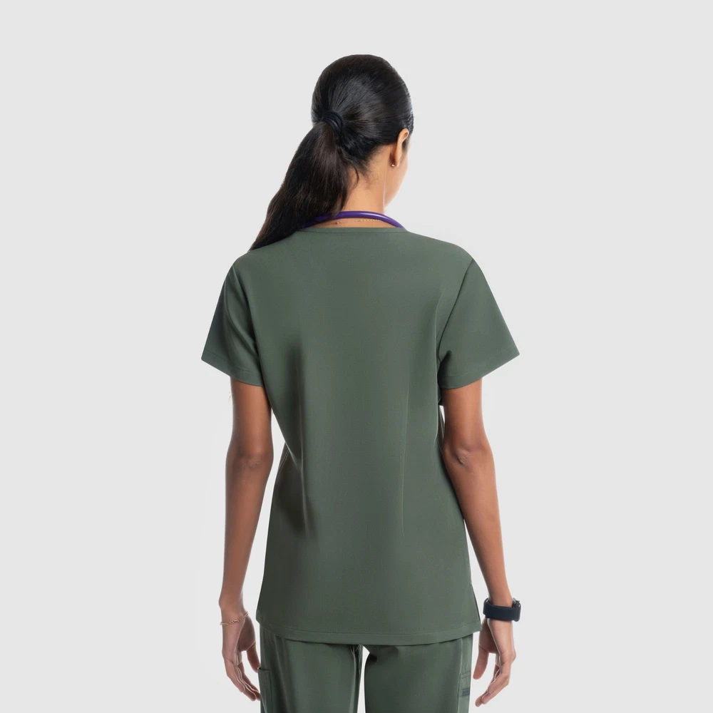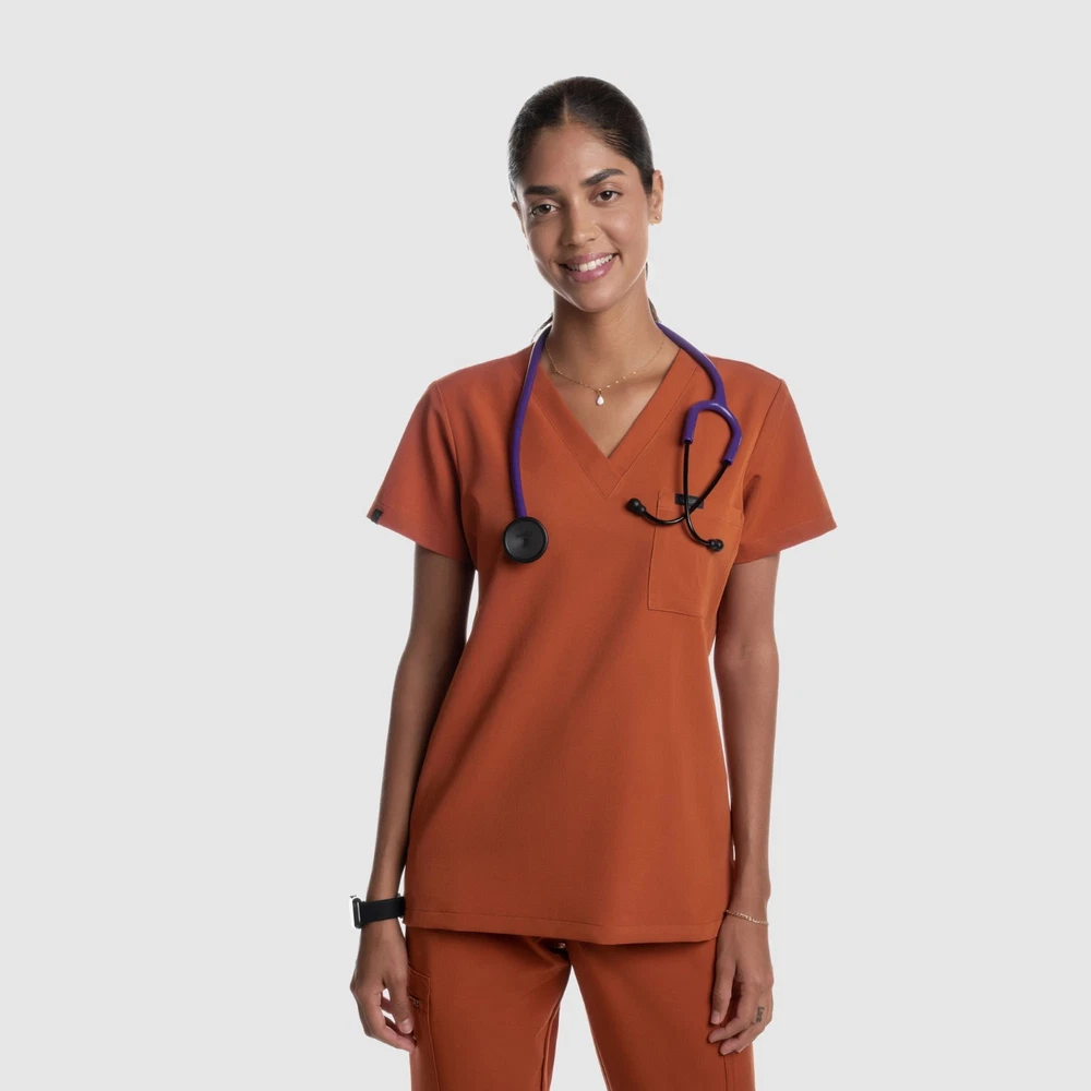 The Amara 1-Chest Pocket Women's Scrub Top by Easure is a stretchy medical uniform top designed for women. Made of polyester, rayon, and spandex, this V-neck top features a solid pattern and a convenient chest pocket. Perfect for medical professionals looking for comfortable and functional work clothing. Stay comfortable and professional with the Amara Women’s V-Neck Scrub Top, designed for performance and everyday wear in medical environments. Crafted from a premium polyester, rayon, and spandex blend, this scrub top provides excellent stretch, breathability, and ease of movement. The flattering V-neck silhouette delivers a modern look, while the functional chest pocket adds practical storage. Wrinkle-resistant fabric helps you stay neat and confident throughout your shift, making this scrub top a dependable choice for busy professionals. Perfect for hospitals, clinics, nursing homes, and healthcare settings