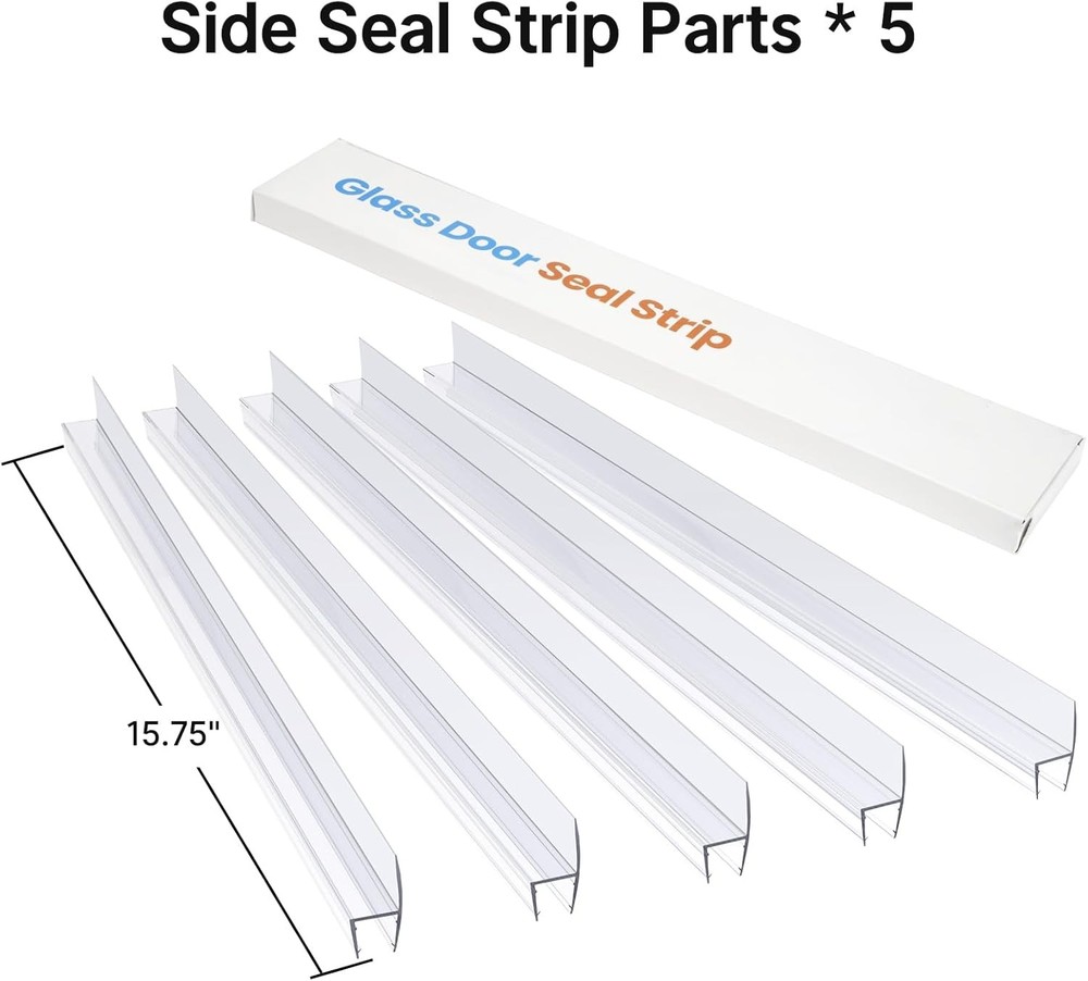 AmazerBath 5 PCS Shower Door Side Seal Strip for 1/2 Inch Glass - 15.75 Clear Description Features: Great Water Barrier: The waterproof fins on the side of the shower door seal strip form a tight seal with the glass to prevent water from leaking out of the door. Make your bathroom look clean and tidy. Easy to Install: The shower door side seal is installed in 5 sections. Use a wet lubricant in the channel of the door seal, and push up the door seal edge. Easy to install within 10 minutes, no tape or adhesive required. Reliable Material: Our frameless shower door side seal is made of tough PVC material, which will not deform and change color after extended use. Scientific and Perfect Design: We added a fixed slot rail on the inner side of the shower door seal to ensure that it will not fall off after long-term use. Product Details: Brand: AmazerBath Color: Clear Item Thickness: 0.5 Inches Number of Items: 1 Manufacturer: AmazerBath Unit Count: 6.5625 Feet Item Weight: 7 ounces Product Dimensions: 15.9 x 1.89 x 0.9 inches Country of Origin: China Item model number: P-AB-DBS102-1/2-New Style: Side Seal 1/2 Included Components: Side Seal Batteries Required?: No Brand: AmazerBath Color: Clear Item Thickness: 0.5 Inches Number of Items: 1 Manufacturer: AmazerBath Handling We will ship all orders within 1 business day of payment. Delivery We Do Not Ship Outside of the Continental US. Return Policy All items qualify for returns within 30 days of receipt. Buyer is responsible for return shipping on any item that is not damaged. Feedback We take our reputation seriously, we buy and sell online, so we understand the value of trust. If you are unsatisfied with your order, please contact us and we will work with you to resolve it to your satisfaction.