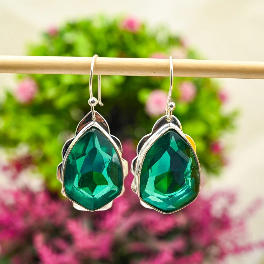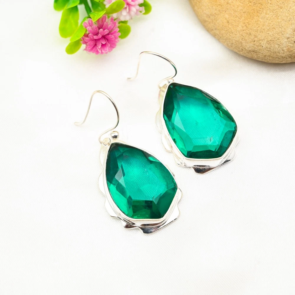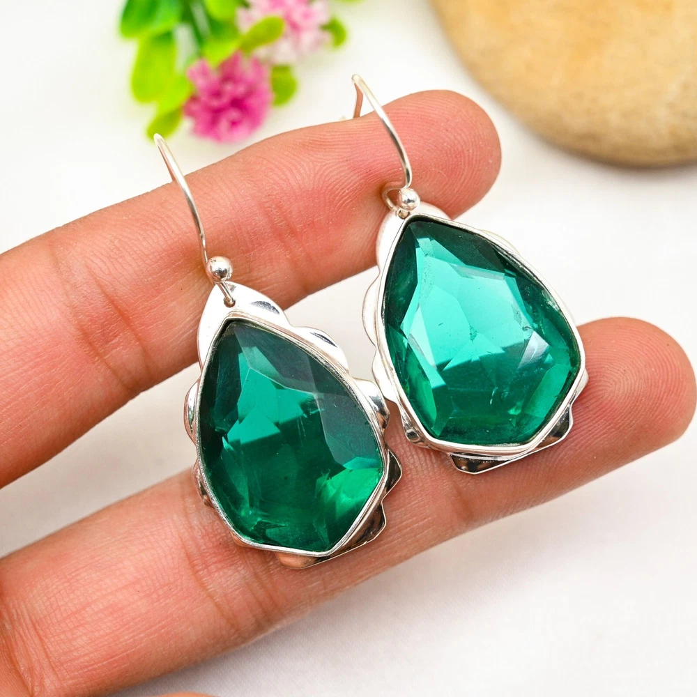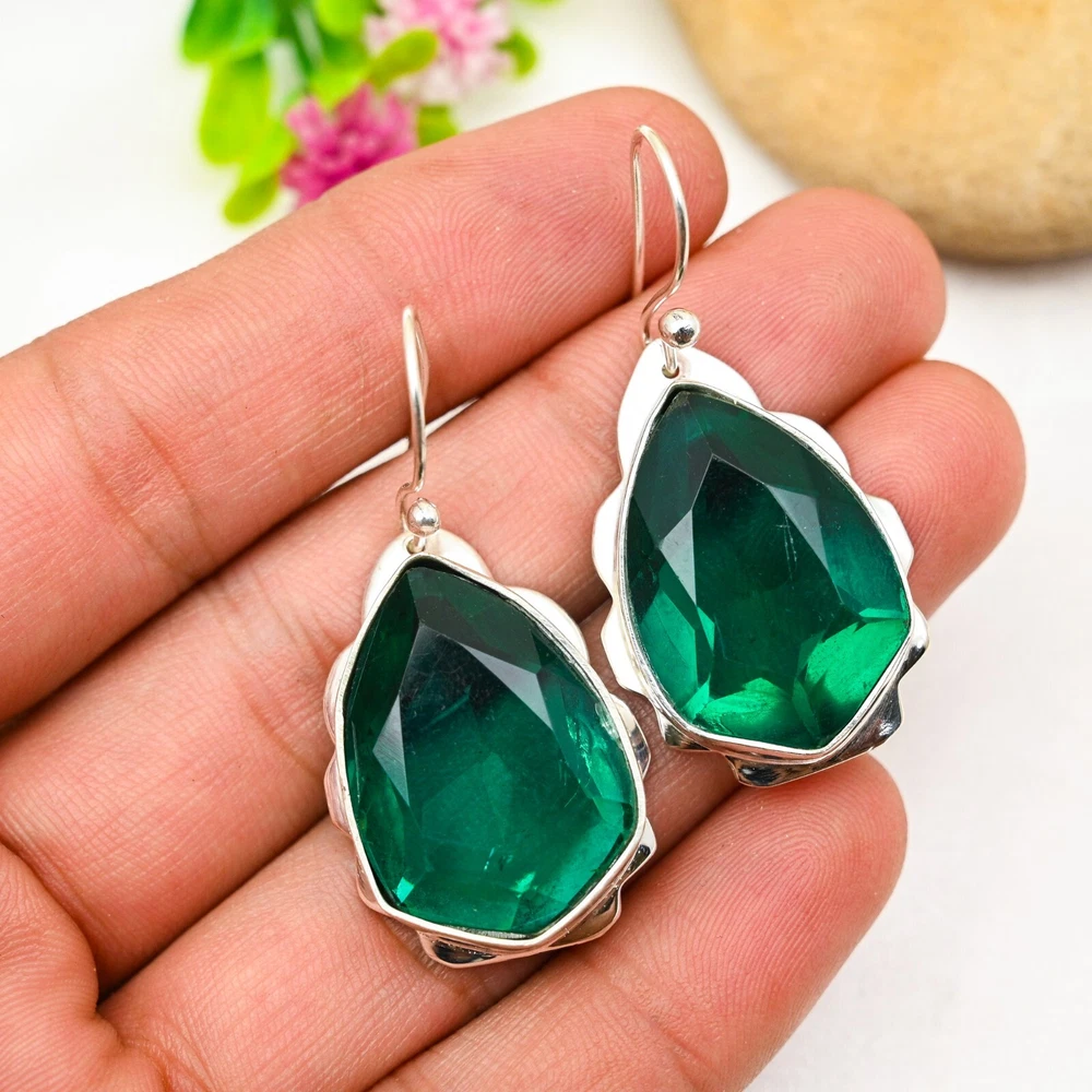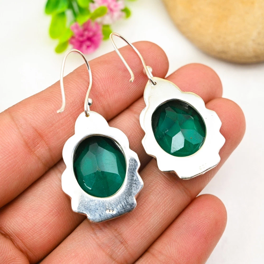 Amazing Green Onyx Gemstone Earring 925 Sterling Silver Handmade Jewelry Gift