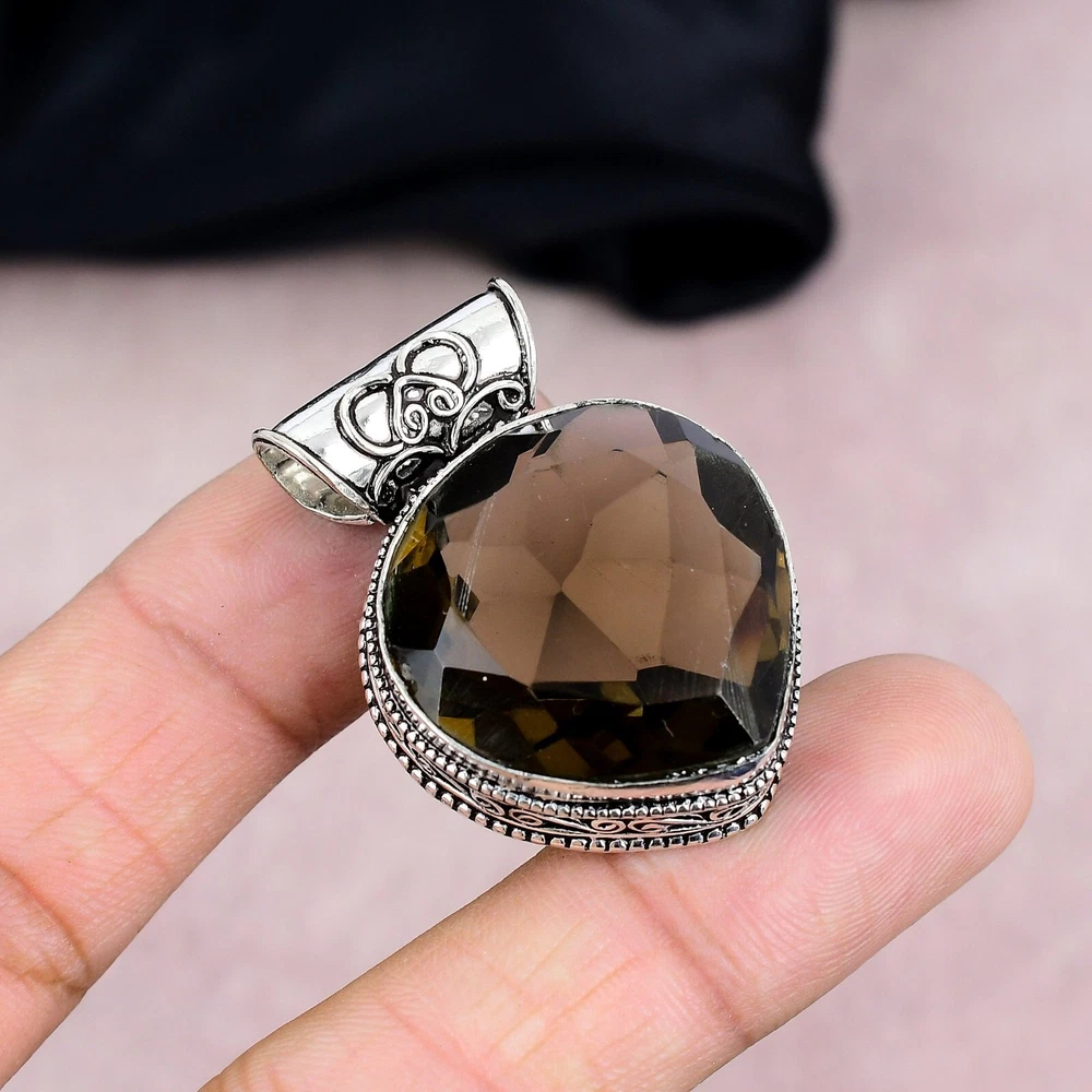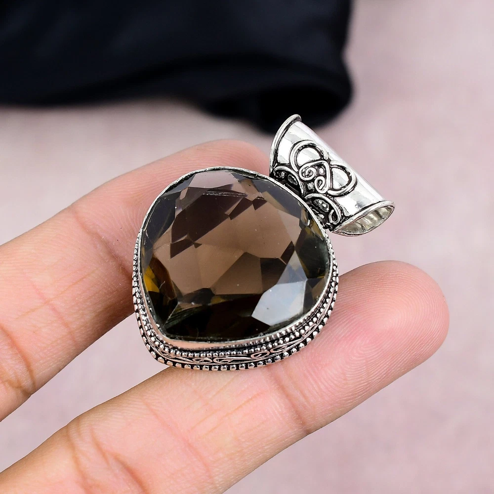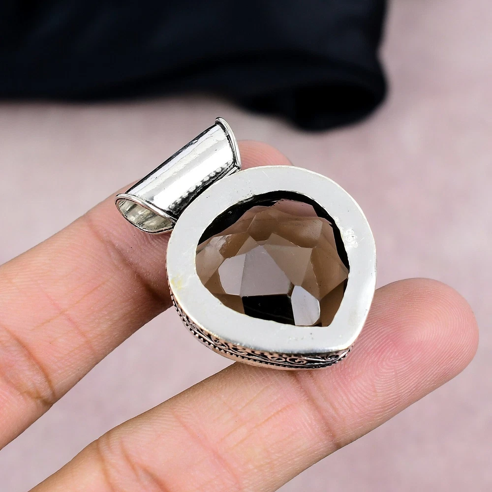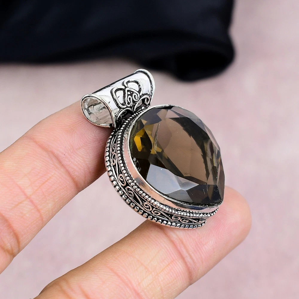 Amazing Smoky Quartz Gemstone Pendant 925 Sterling Silver Handmade Jewelry Gift