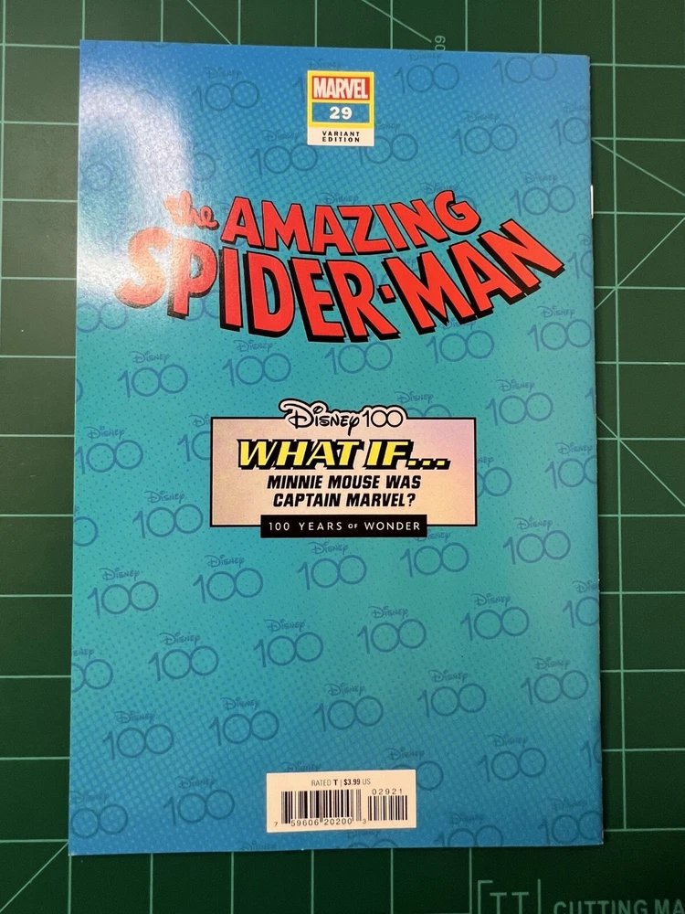 The Amazing Spider-Man #29 Disney100 What If? Variant (2024) features a charming cover by Giada Perissonotto, celebrating Disney’s 100th anniversary with a unique reimagining of Marvel history. This special variant puts a Disney-inspired twist on Amazing Spider-Man #29 , blending classic animation aesthetics with the superhero action of Spider-Man’s world. Perissonotto’s artwork offers a fresh and whimsical take on an iconic Marvel moment, making this cover a must-have for collectors and fans of both Disney and Marvel. Condition and Description: This comic book is in Very Fine (VF) condition?nearly perfect with outstanding eye appeal. The colors remain vibrant, and the pages are tight with minimal wear, making it an excellent addition to any collection. Please review the provided pictures carefully to ensure it meets your expectations. If you have any questions or need further clarification, feel free to ask?I'm happy to help! Packaging and Handling: Your comic(s) will be packaged with the utmost care, just as I would for my own collection. I use sturdy materials, including cardboard protection , to ensure your comic arrives in the same condition it left my hands. If you encounter any issues upon arrival, please contact me immediately so I can resolve the matter promptly. Returns: Returns are accepted under the following conditions: The item must be returned in the same condition as received. Include all original packaging (boxes, bags, tags, UPCs). Ensure the comic(s) are shipped back with cardboard protection to prevent damage. Shipping: Default shipping is via USPS Ground Advantage . If you prefer Priority Mail , please request this option at checkout. Customer Satisfaction: I strive to provide an excellent buying experience . If there's anything more I can do to earn your business and positive feedback, please let me know?your satisfaction is my top priority !