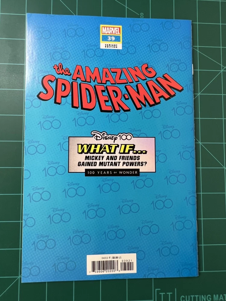 Amazing Spider-Man #39 Disney100 What If? Variant – Vitale Mangiatordi Cover (Marvel, 2023) Celebrate Disney’s 100th anniversary with this exclusive Disney100 What If? Variant of The Amazing Spider-Man #39 , featuring striking cover art by Vitale Mangiatordi . This special edition reimagines Spider-Man in a unique "What If?" scenario, blending the iconic worlds of Marvel and Disney . Published in 2023 , this collectible variant is perfect for Marvel fans, Disney collectors, and variant cover enthusiasts . Don’t miss out on this limited-edition tribute to two legendary universes! Condition and Description: This comic book is in Very Fine+ (VF+) condition?nearly perfect with outstanding eye appeal. The colors remain vibrant, and the pages are tight with minimal wear, making it an excellent addition to any collection. Please review the provided pictures carefully to ensure it meets your expectations. If you have any questions or need further clarification, feel free to ask?I'm happy to help! Packaging and Handling: Your comic(s) will be packaged with the utmost care, just as I would for my own collection. I use sturdy materials, including cardboard protection , to ensure your comic arrives in the same condition it left my hands. If you encounter any issues upon arrival, please contact me immediately so I can resolve the matter promptly. Returns: Returns are accepted under the following conditions: The item must be returned in the same condition as received. Include all original packaging (boxes, bags, tags, UPCs). Ensure the comic(s) are shipped back with cardboard protection to prevent damage. Shipping: Default shipping is via USPS Ground Advantage . If you prefer Priority Mail , please request this option at checkout. Customer Satisfaction: I strive to provide an excellent buying experience . If there's anything more I can do to earn your business and positive feedback, please let me know?your satisfaction is my top priority !