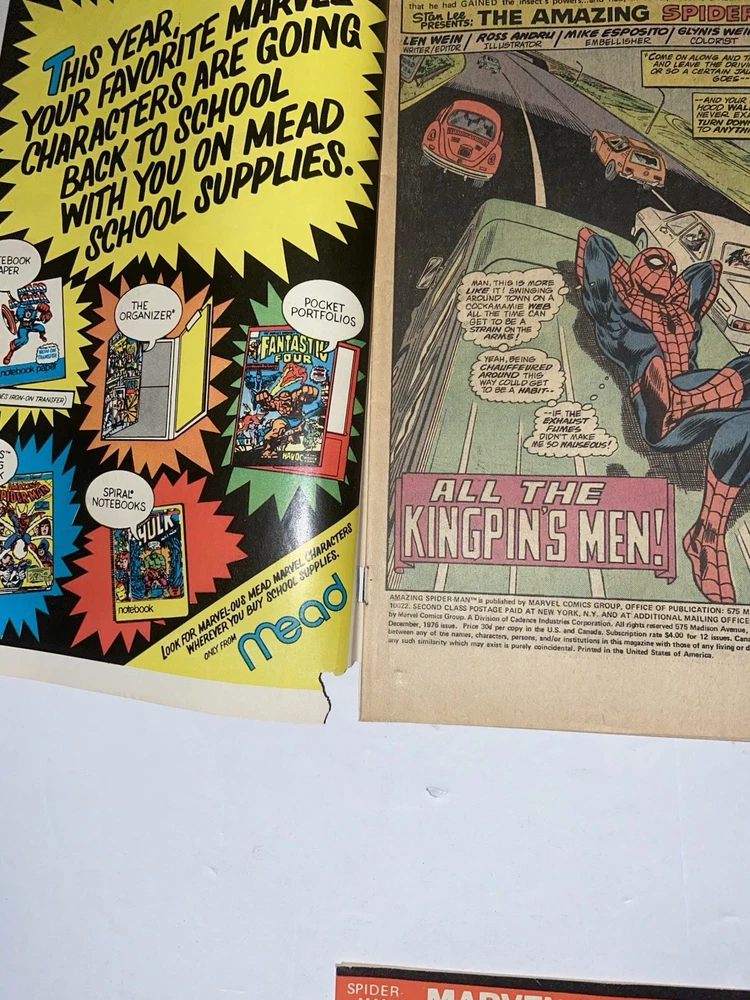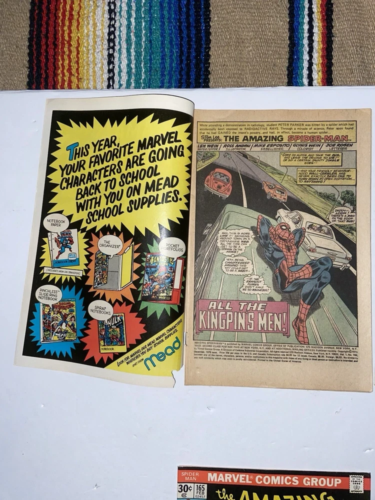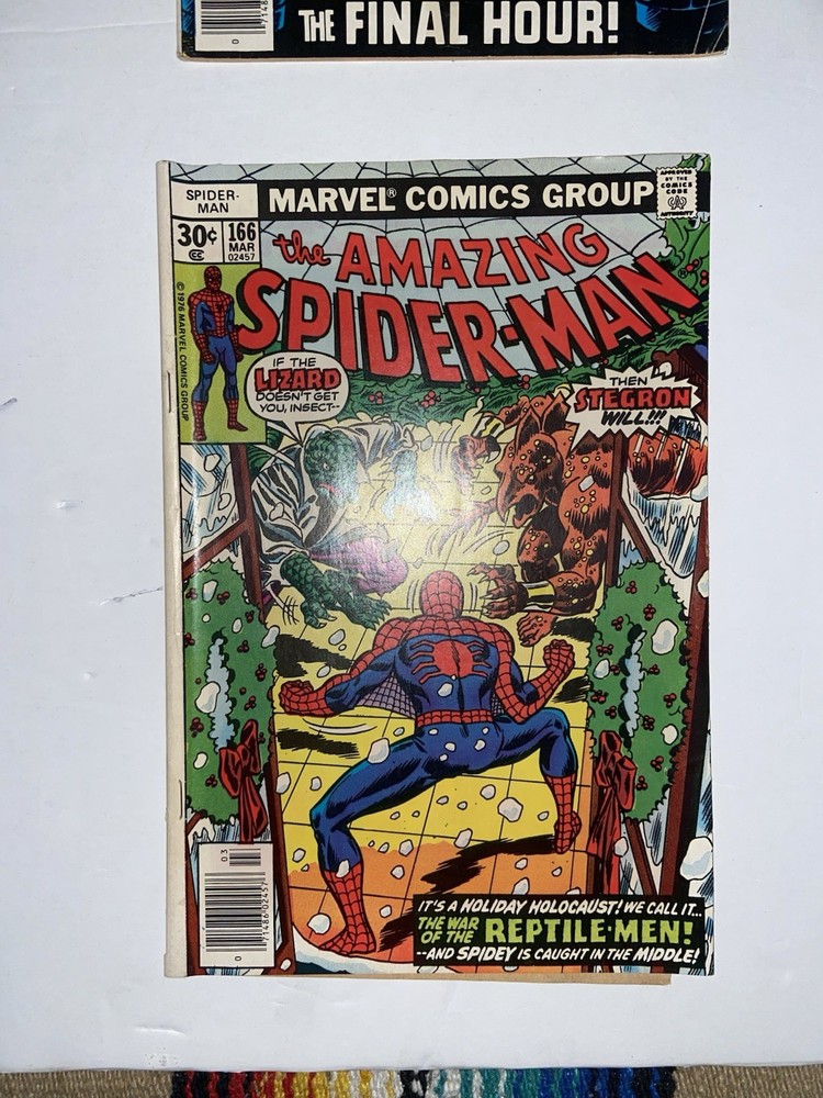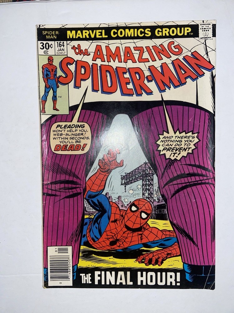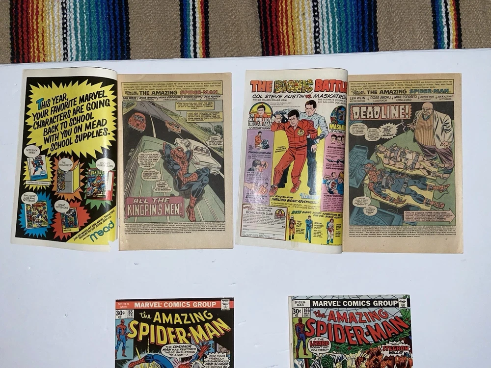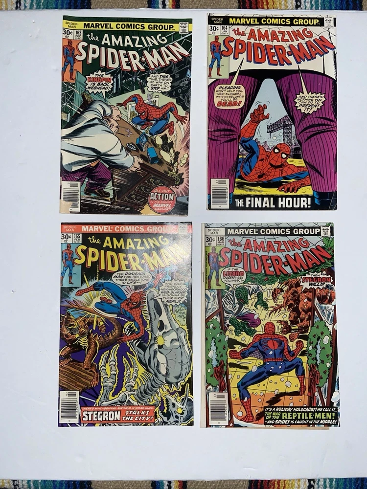 Up for sale is a Bronze Age Amazing Spider-Man lot featuring issues #163–166 (Marvel Comics, 1976). This consecutive mini-run includes classic Spider-Man stories and villains such as Kingpin, Lizard, and Stegron. All books are original newsstand copies from the 30¢ era. Overall condition appears solid with good color and strong eye appeal for their age. Please review all photos closely, as they are part of the description and best represent condition. This lot is perfect for: • Bronze Age Spider-Man collectors • Run builders • Readers looking for classic 1970s Marvel stories 📦 Comics will be packed securely with care to ensure safe delivery. Thanks for looking and supporting Kitty Kat Comix
