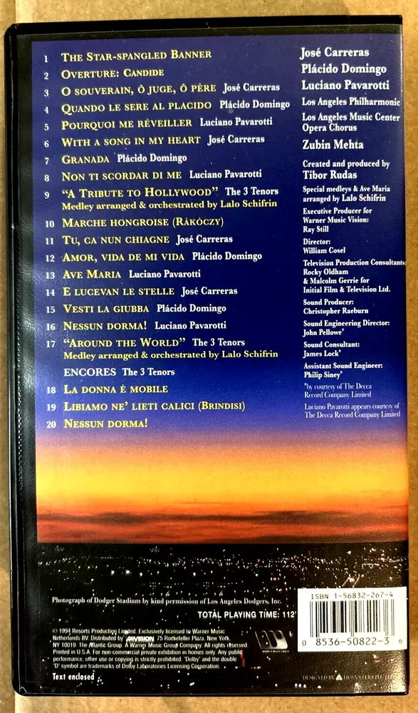Amazing- The Three Tenors: Carreras/Domingo/Pavarotti VHS 1994 Live Concert!