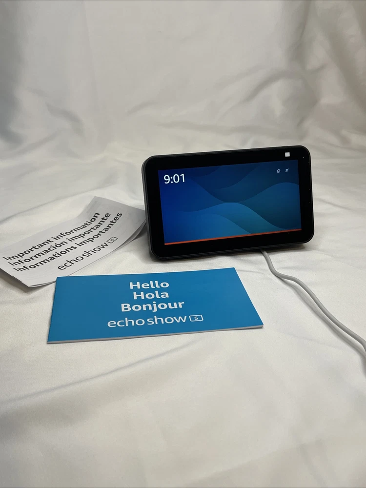 The Amazon Alexa Echo Show 5 3rd Gen is a 5.5" Smart Display that supports Alexa voice assistant. It is designed for smart home compatibility and serves as a hub for various tasks. With its interactive display, users can access information, control smart home devices, make video calls, and much more. New in box See pictures for item you will receive