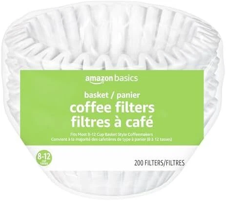 200 white basket coffee filters; fit most 8-12 cup basket coffeemakers Provides superior coffee filtration and eliminates gritty sediment, while allowing the great coffee taste to come through Filters are Compostable* Made in the USA of imported and domestic components If you like Melitta basket coffee filters, we invite you to try Amazon Basics Basket Style Coffee Filters Alexa voice shopping enabled: to place your next order, just say, “Alexa, reorder Amazon Basics White Basket Coffee Filters"