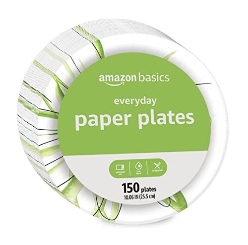 Includes 150 plates 10.06 inches paper plates The 10 inches plate is the perfect size for dinner, everyday meals, parties and picnics Everyday disposable plates for parties, holidays, and every day use SFI: Sustainable Forestry Initiative (SFI) certified dishware plate (SFI-01675) Microwave-safe, soak proof, and cut resistant