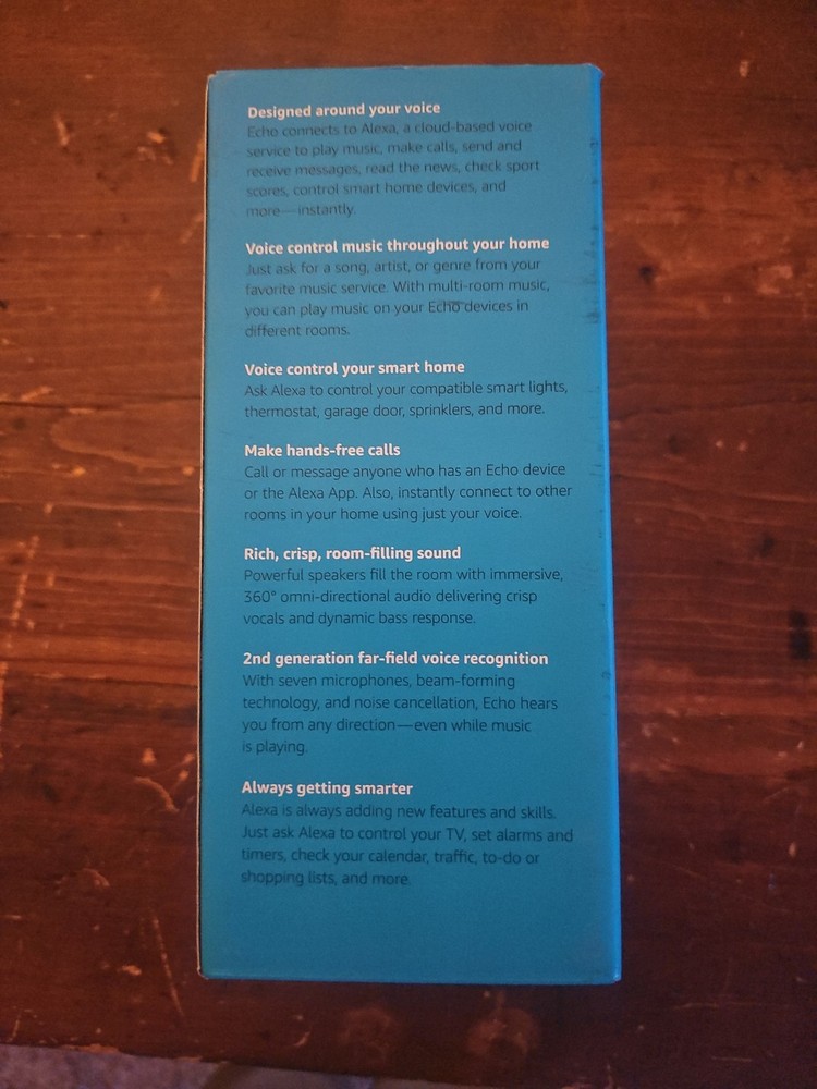 The Amazon Echo (2nd Generation) Smart Assistant in Charcoal Fabric is a sleek and modern smart speaker that offers a variety of features such as Wi-Fi connectivity, music playback, alarm clock, and internet radio. With its fabric material and black color, it fits seamlessly into any home decor. The smart assistant allows for convenient voice control, making it easy to play music, set alarms, and access information with just your voice commands. Perfect for those looking to enhance their smart home experience with a stylish and functional smart speaker.