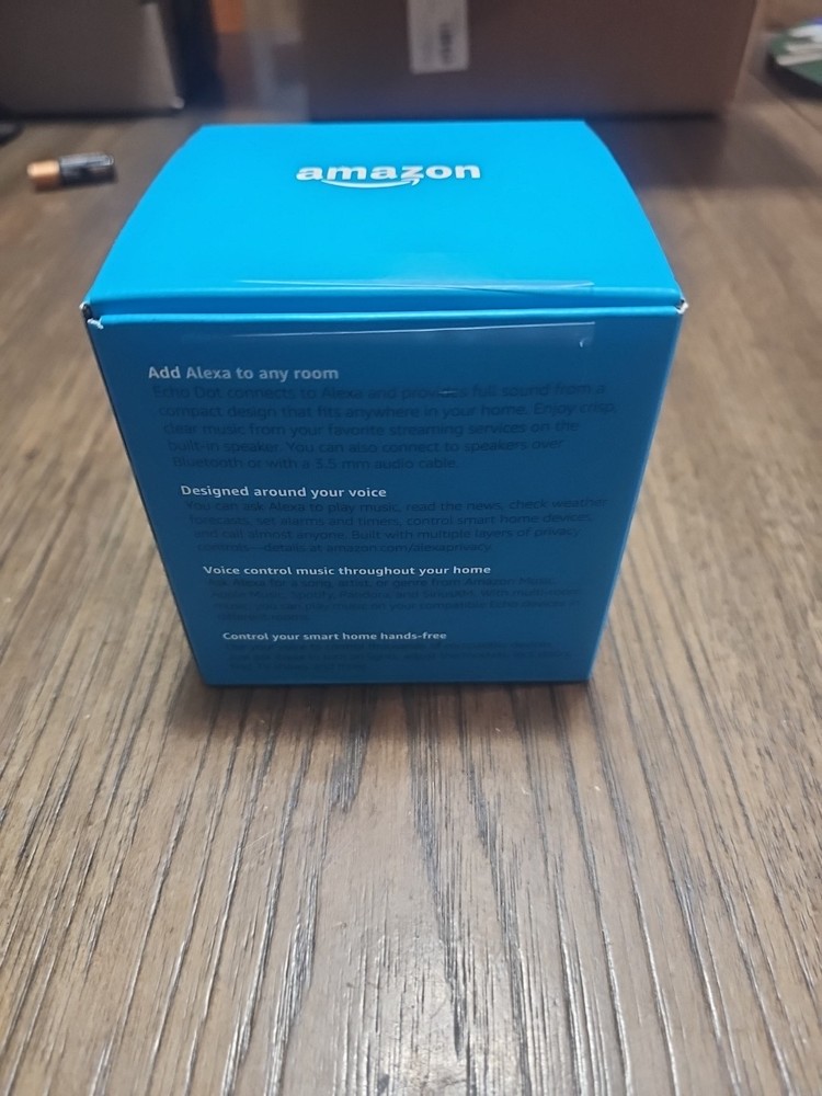 The Amazon Echo Dot (3rd Generation) Smart Speaker in Charcoal is a versatile and sleek device designed for a range of compatible brands including Apple, AmazonBasics, Android, and more. With a modern 3rd Generation shape and black color, this smart speaker is equipped with Alexa for smart home compatibility. The system configuration includes a subwoofer for enhanced sound experience, and it features audio inputs such as USB and stereo L/R RCA. The speaker also boasts features like Bluetooth connectivity, remote control, WiFi capabilities, voice search, and touch control, making it a convenient and powerful addition to any home setup. Box has been opened and product was used for setup.