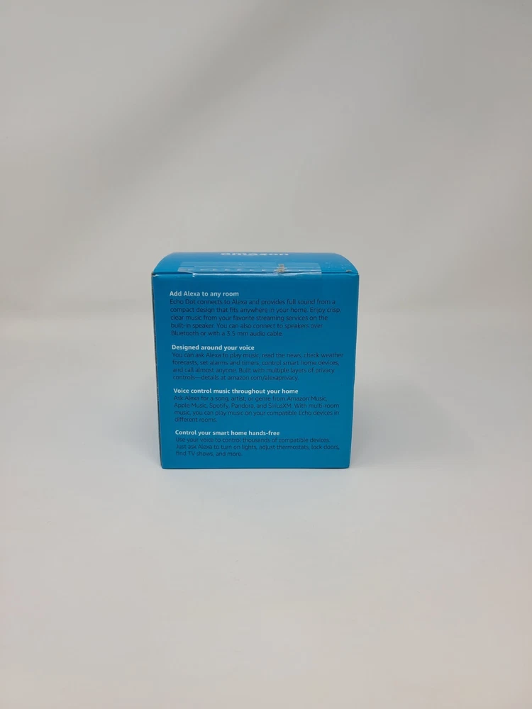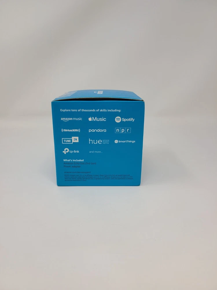This is an Amazon Echo Dot (3rd Generation) smart speaker with Alexa smart home compatibility. It offers both wired and wireless connectivity options. The product is used and tested, ensuring it is in good working. Play music: You can play music, podcasts, and more from services like Spotify. Get information: You can ask for news, weather, sports scores, and more. Control smart home devices: You can use the Echo Dot to turn on lights, adjust the thermostat, and more. Set timers and alarms: You can use the Echo Dot to set timers and alarms. Add items to your shopping list: You can use the Echo Dot to add items to your shopping list. Make calls: You can use the Echo Dot to make Skype calls. Check on your fitness: You can use the Echo Dot to check on your FitBit stats. Get nutrition information: You can use the Echo Dot to get nutrition information. Do a workout: You can use the Echo Dot to start a workout. You can use the Echo Dot in any room of your house. It can connect to your speakers over Bluetooth or with the included audio cable