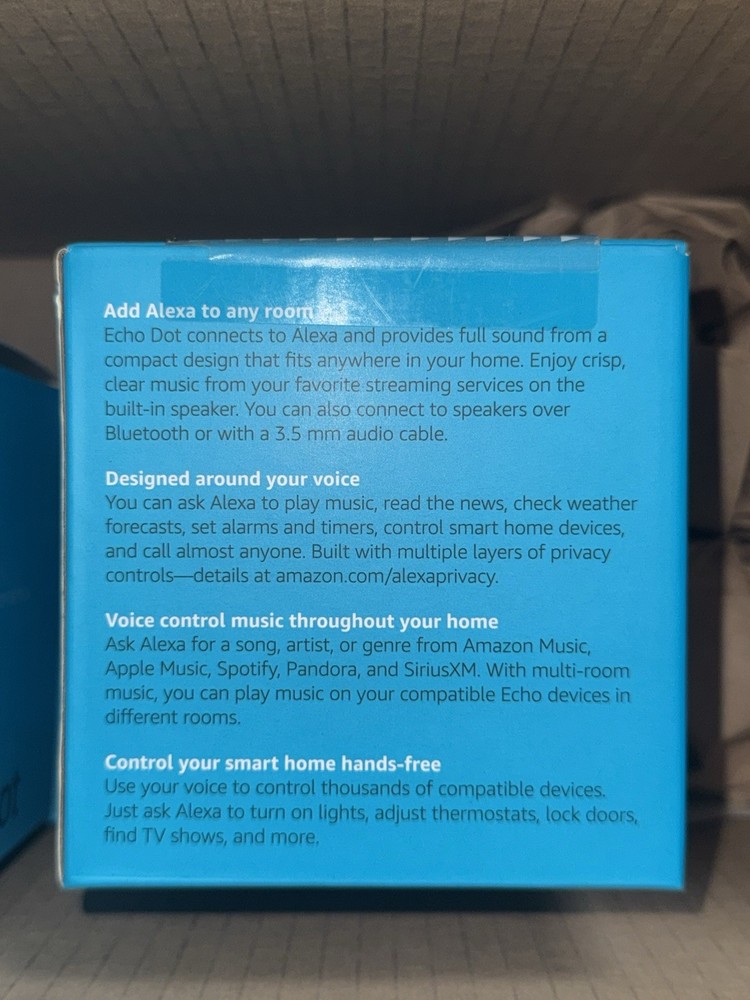 The Amazon Echo Dot (3rd Generation) Smart Speaker with Alexa in Charcoal is a sleek and modern device that offers a variety of features for a seamless smart home experience. With its sphere shape and black color, this smart speaker fits seamlessly into any room decor. Its Bluetooth and Wi-Fi connectivity allows for easy integration with other devices, while its smart home compatibility with Alexa ensures control over a wide range of smart home devices. Released in 2018, this smart speaker provides up-to-date technology in a compact and stylish package. No Power Cord included