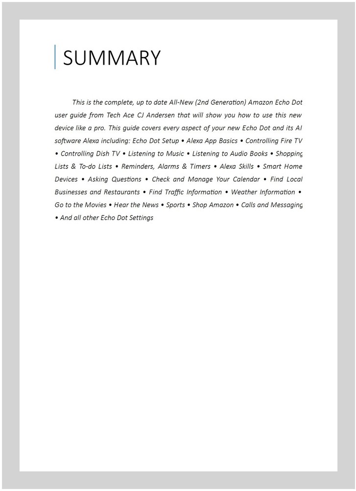 This guide is incredibly helpful for anyone new to the Echo Dot! It breaks down setup and features in simple steps, making it easy to master Alexa’s skills. Packed with handy tips and tricks, it turns beginners into savvy users. The clear instructions and practical advice make it a must-have for getting the most out of your smart speaker. Perfect for quick reference and learning on the go!