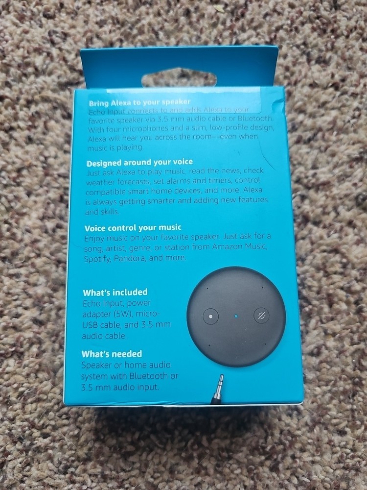 The Amazon Echo Input is a smart speaker adapter that allows you to add Alexa voice control to any speaker. With wireless connectivity options like Bluetooth and Wi-Fi, as well as micro-USB compatibility, you can easily connect your existing speakers to the Echo Input and enjoy the convenience of Alexa voice control. The sleek black design and smart home compatibility with Alexa make it a versatile and stylish addition to your home technology setup. Sealed brand new