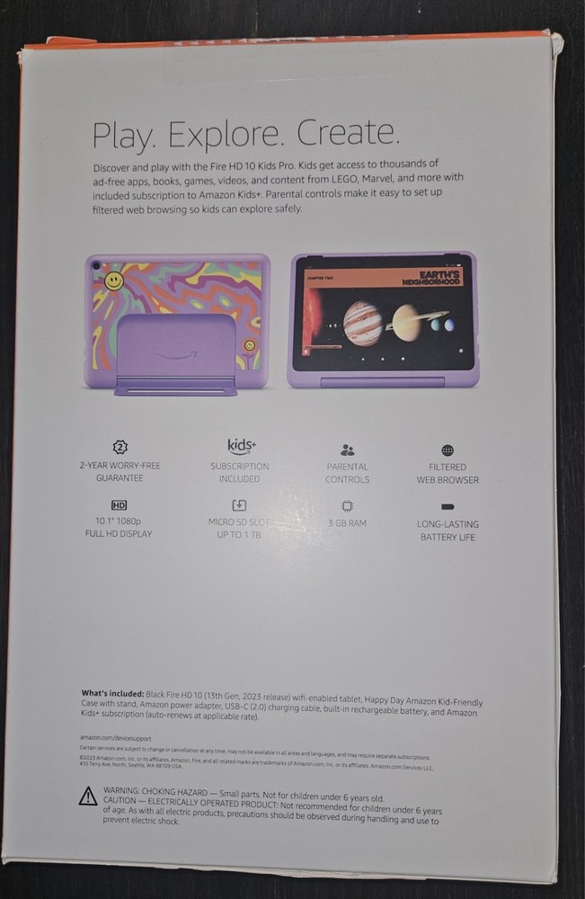 This is the latest version Amazon HD10 tablet with 32 GB storage. It is fully functional and in great condition. No scratches to the screen and only mild scuffing to the plastic backing of the tablet. Included are the tablet and generic USBC charging cable.