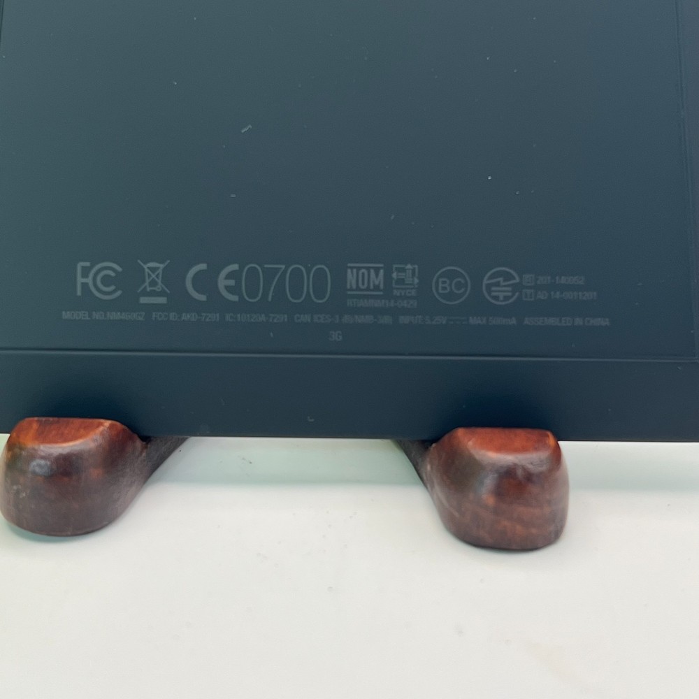This Amazon Kindle Voyage e-reader is a highly regarded discontinued model known for its sharp 300 PPI display and intuitive page press sensors. The Voyage features an adaptive front light that automatically adjusts to ambient lighting, making it comfortable to read in both bright and low-light environments. Many Kindle users still consider this model a favorite due to its slim profile, premium screen clarity, and tactile page-turn controls. The device powers on properly and presents the setup screen. A blue origami-style protective case is included.