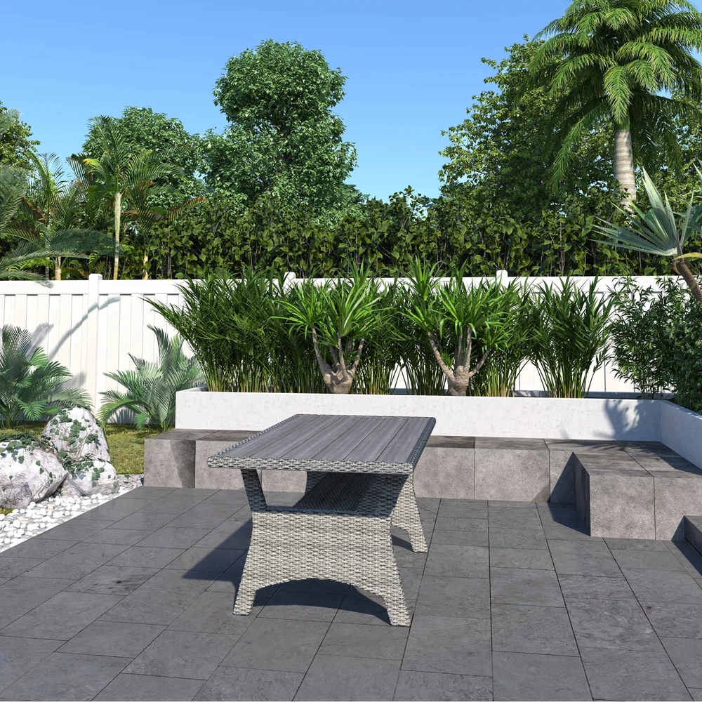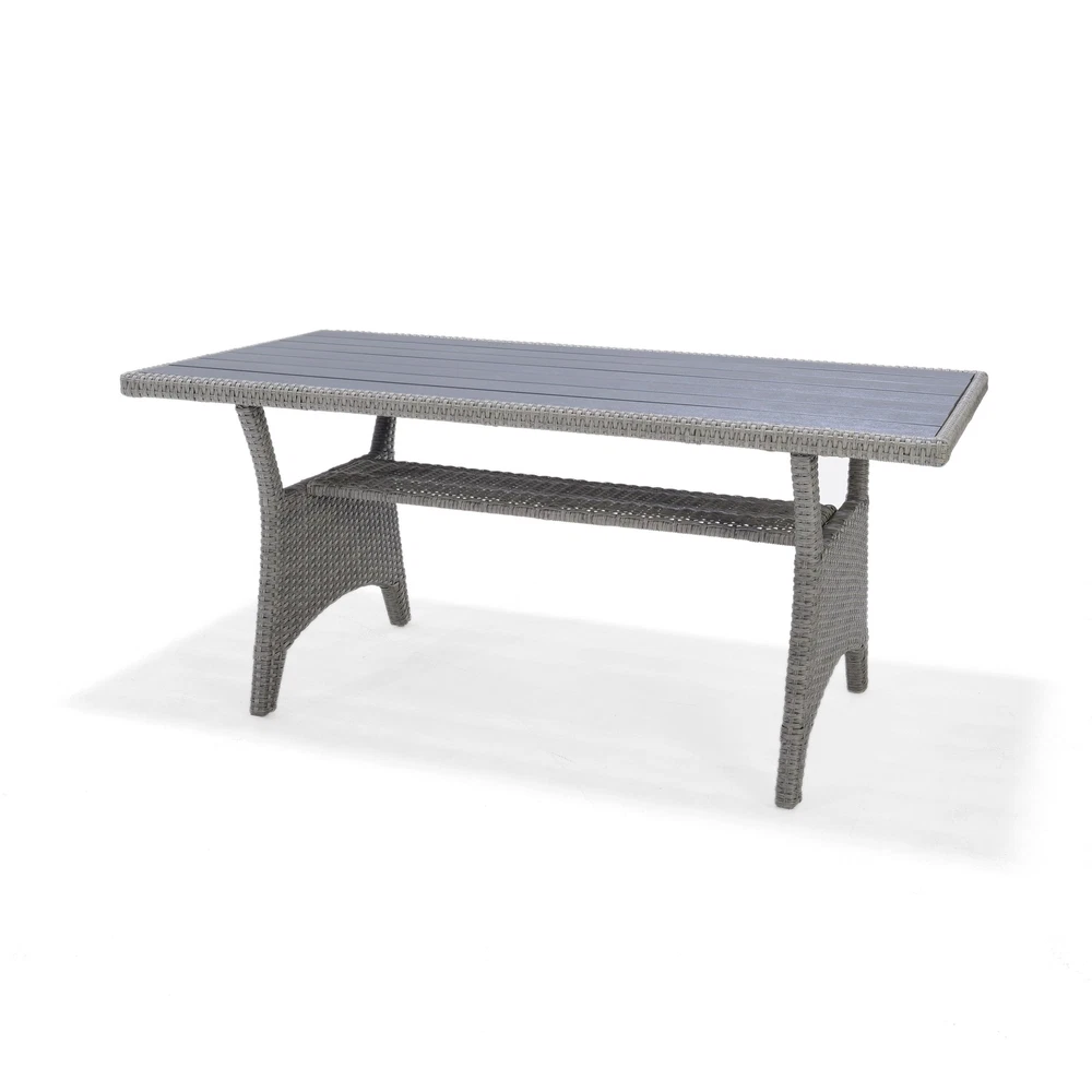 Enjoy your patio with our Amazonia Wicker outdoor collection; this elegant design is made using high quality steel & wicker which allows it to be ideal for any climate and durable in any weather. This set is enjoyable and perfect for any outdoor environment. Functional Dining TableDurable steel frame and synthetic wicker for great all weather resistance. Dimensions Table Dimensions: 58L x 27W x 26H Sturdy & Durable DesignOur products can be left outside throughout the year and can withstand all types of weather. Material: The top of the table is made of synthetic wood Free Shipping Over $49.99* Details Amazonia Creme Outdoor Patio Grey Wicker Dining Table Product Description: Enjoy your patio with our Amazonia Wicker outdoor collection; this elegant design is made using high quality steel & wicker which allows it to be ideal for any climate and durable in any weather. This set is enjoyable and perfect for any outdoor environment. Functional Dining TableDurable steel frame and synthetic wicker for great all weather resistance. Dimensions Table Dimensions58L x 27W x 26H Sturdy & Durable DesignOur products can be left outside throughout the year and can withstand all types of weather. MaterialThe top of the table is made of synthetic wood