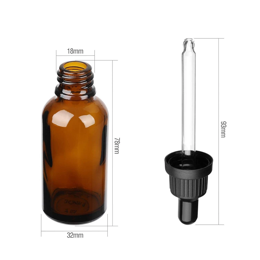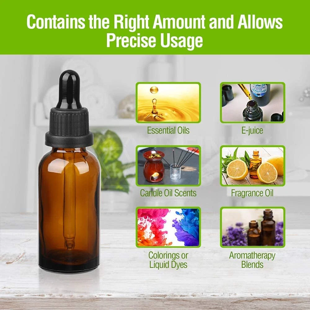 【UV Protection】Amber glass bottles provide excellent UV protection for the contents. This is important because UV rays can sometimes change the components of the contents. If your product is at risk for spoiling due to UV rays, amber glass can help. 【Blue Light Protection】 There are both positive and negative sides to blue light, but the primary concern with any light is the photochemical affect it will have on food and bacteria interacting with the food. If you are weighing the light-blocking protection provided by cobalt blue dropper bottles and amber dropper bottles, only amber glass can protect from blue light. 【Safer Materials Interaction】 Given the natural qualities of glass, no harmful chemicals can leach into the product. If you are concerned with the potential for leaching from plastic containers, glass dropper bottles provide a great alternative. 【Excellent Sealing】 Bottle includes glass dropper and black polypropylene cap, with airtight sealing due to screw-type mouth and built-in white foam pad. 【Liquid Bottles for Easy Carry】Amber bottles are great for storing tinctures, essential oils, extracts and concoctions, aromatherapy solutions, liquid dyes, paints, candle scents, perfume oil fragrances or just about any liquid material requiring application of drops. Small size makes it convenient for travel.