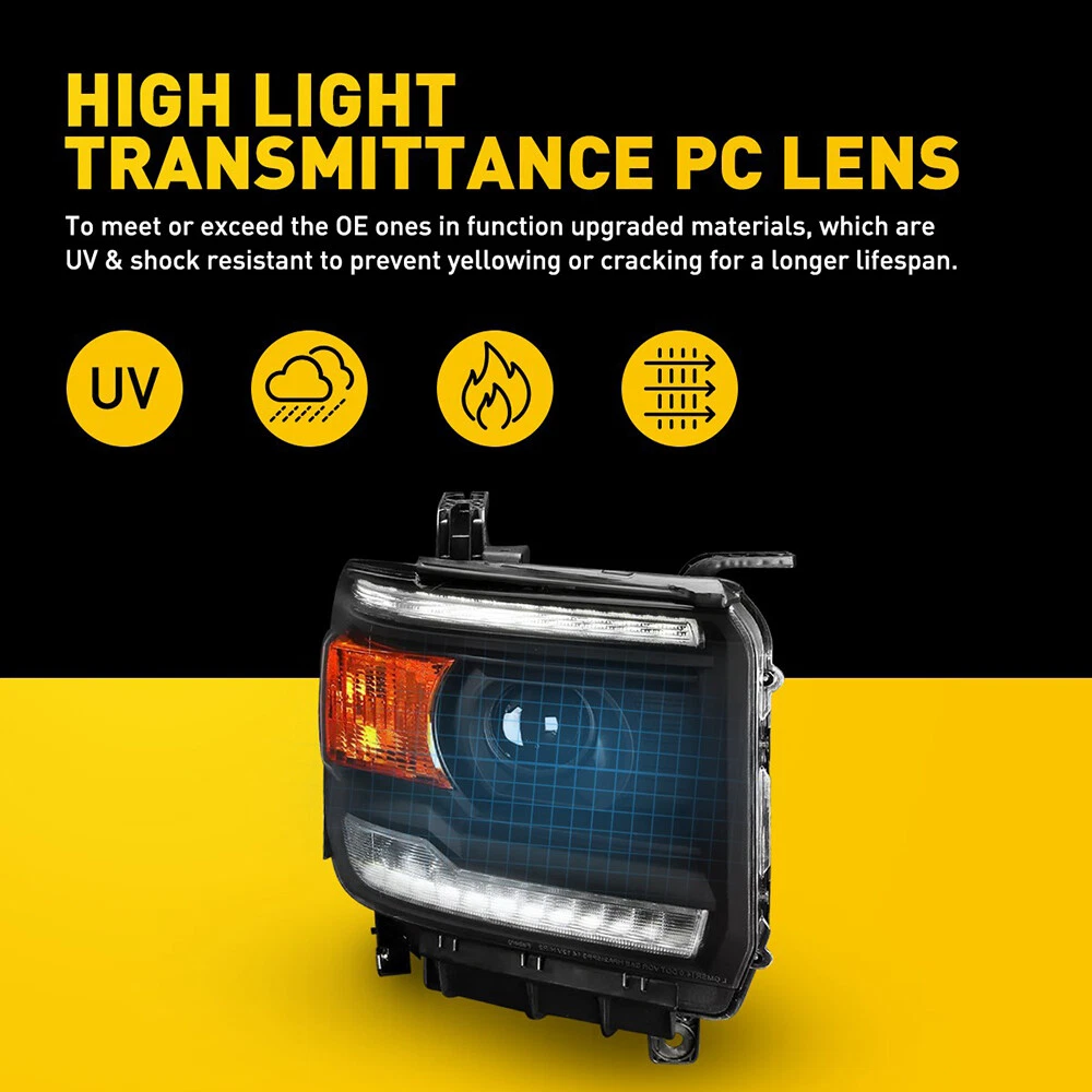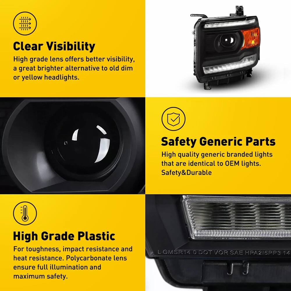 Fit for: 2014-2018 GMC Sierra 1500 Base / Denali / SLE / SLT models only 2015-2019 GMC Sierra 2500HD Base / Denali / SLE / SLT models only 2015-2019 GMC Sierra 3500HD Base / Denali / SLE / SLT models only (Compatible models with factory LED daytime running lights) (Does not compatible models with 2014 classic body style) (For models with factory non-LEDs lights headlights: This headlights will light up the bottom LEDs only by manually turn on the parkinglights; the top LEDs will not turn on) (Fits models with factory halogen headlights only; Does Not fit models with factory Xenon HID headlights) Specifications: OE number: GM2502390, GM2503390, GM2502394, GM2503394 Amber Headlight Corner W/ Projector DRL For 15-19 GMC Sierra 2500HD 3500HD EOOH Fit for: 2014-2018 GMC Sierra 1500 Base / Denali / SLE / SLT models only 2015-2019 GMC Sierra 2500HD Base / Denali / SLE / SLT models only 2015-2019 GMC Sierra 3500HD Base / Denali / SLE / SLT models only (Compatible models with factory LED daytime running lights) (Does not compatible models with 2014 classic body style) (For models with factory non-LEDs lights headlights: This headlights will light up the bottom LEDs only by manually turn on the parkinglights; the top LEDs will not turn on) (Fits models with factory halogen headlights only; Does Not fit models with factory Xenon HID headlights) Specifications: OE number: GM2502390, GM2503390, GM2502394, GM2503394 23130715, 23130716, 23130717, 23130718 Material: ABS+PC (ABS Plastic Housing/Polycarbonate lens) Appearance color: 1.Housing Color:Black 2.Lens Color:Clear 3.Reflector Color:Amber Note: Projector √ ???Include???/span> DRL √ (Not Include) Bulb × ( Not include) Features: *Easy to install: Direct replacement, drilling and cutting are not required. *Superior quality: Made of ABS and PC materials with toughness and heat resistance functions to ensure its long service life and durability. *Angle adjustment: Equipped with a headlamp Angle adjustment knob, you can adjust the best Angle of view through the knob. *Suggestion: 1.Please confirm the OE number before purchasing!!! 2.Professional installation is required!!! Packaging include: Headlights*2(Left+Right) Item Specifics Brand AUXITO Number of Bulbs No Bulbs Included Type Headlight Assembly Features w/ Projector, DRL, Direct Fit, Easy Installation Placement on Vehicle Front, Left, Right OE/OEM Part Number GM2502390, GM2503390, GM2502394, GM2503394 Manufacturer Warranty 2 Years Material ABS Plastic Housing & Polycarbonate Lens Tips Professional installation is required Housing Color Black Lens Color Clear Reflector Housing Color Amber Interchange Part Number GM2502390, GM2503390, GM2502394, 23130715, 23130716 Universal Fitment No Number of Pieces 2 Fitment Type Direct Replacement Fitment 1 For 2014-2018 GMC Sierra 1500 Base / Denali / SLE / SLT Fitment 2 For 2015-2019 GMC Sierra 2500HD Base / Denali / SLE / SLT Fitment 3 For 2015-2019 GMC Sierra 3500HD Base / Denali / SLE / SLT With Projector Yes With DRL Yes Payment We accept PayPal via eBay Secure Check-Out only. Immediate payment needs to be processed for items with Add to Cart option so that any promotional discounts can be applied to your order immediately. Shipping 1 .We do everything we can to ship your orders out as soon as possible. 2. Shipping and Handling: We process orders within two business day after the payment was clear. Returns Our 30-day Satisfaction Guarantee assures our customers that they will receive all orders promptly and exactly as described. In addition, it allows customers to return new and unused products in their original factory condition for any reason within 30 days from the date of purchase. 1. All returns must be pre-approved by AUXITO and have a return merchandise authorization(RMA) number. Unauthorized returns will not be accepted. 2. Buyers are responsible for appropriate packing, returning shipping cost, insurance and returning the item in "new" condition. Used items will not be accepted for return. 3. We will replace the returning item with an identical item, issue a full store credit or a full refund. Contact Us Our Working Time:(GMT+8)Monday to Friday,9:00-18:00. For inquires and customer support, please send your email via ebay email system. All emails will be responded to within 24 hours during business days. Feedbacks 1. We appreciate your business and strived to improve our customer service and our commitment to quality. 2. We will leave a positive feedback immediately after payment is received. We appreciate a positive feedback as much as you do. 3. If for some reason there is any issue with the purchase, please contact us prior to leaving feedback, and we will be glad to work with you to have it resolved. DESCRIPTION PAYMENT SHIPPING RETURN POLICY CONTACT US Hot Item Fit For 2015-2019 Hyundai Center Light Gray Sonata Armrest Console Lid Cover USD 12.34 190 PCS Bumper Fender Moulding Side Garnish Grille Retainer Clip ABS Various USD 10.44 4" Red Truck Long Performance High Flow Cold Air Intake Cone Dry Filter Cotton USD 26.59 Waterproof Motorcycle Handlebar Dual USB Phone Charger Cigarette Lighter Socket USD 13.99 146PCS For Toyota RAV4 Fender Door Hood Bumper Trim Clip Retainer Fastener Kit USD 10.92 Hot Item 190 PCS Bumper Fender Moulding Side Garnish Grille Retainer Clip ABS Various USD 10.44 Waterproof Motorcycle Handlebar Dual USB Phone Charger Cigarette Lighter Socket USD 13.99 146PCS For Toyota RAV4 Fender Door Hood Bumper Trim Clip Retainer Fastener Kit USD 10.92 4" Red Truck Long Performance High Flow Cold Air Intake Cone Dry Filter Cotton USD 26.59 Fit For 2015-2019 Hyundai Center Light Gray Sonata Armrest Console Lid Cover USD 12.34 Amber Headlight Corner W/ Projector DRL For 15-19 GMC Sierra 2500HD 3500HD EOOH Fit for: 2014-2018 GMC Sierra 1500 Base / Denali / SLE / SLT models only 2015-2019 GMC Sierra 2500HD Base / Denali / SLE / SLT models only 2015-2019 GMC Sierra 3500HD Base / Denali / SLE / SLT models only (Compatible models wi