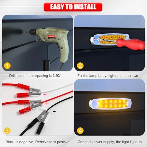 Menu 1. We require immediate payment. 2. We currently accept payment via eBay managed payments only. 3. Once payment is cleared, we will dispatch your shipment within 1-3 business days. Please refer to the "Shipping" tab for more information regarding shipping speed to your destination. Trailer Marker LED Lights Amber 12LED Side Marker Clearance Front Rear Turn Signal Indicator Light 6'' 12V Flash Strobe Constant Marker Light Waterproof for Trailer Truck Van Pickup ATV RV, 5Pcs Product description Amber Trailer Marker Lights: One light has two lighting functions, which integrates constant marker light and flash strobe light. Widely fit for trailer marker lights, side marker lights, clearance lights, identification lights, tail lights, turn signal lights, parking lights, warning lights, rear indicator lights, auxiliary lights, signal lights, bumper lights, etc Suitable vehicle: Widely fit for most 12V vehicles such as trailer, truck, car, bus, pickup, off-road, Wrangler, golf cart, ATV, UTV, RV, van, semi-trailers, boat trailer, SUV, caravan, etc Selected Material: Made of enhanced PC Lens, durable chrome bezels and 12 built-in high-brightness LED chips. IP67 sealed waterproof and dust-proof, low heat, low power consumption, use time up to 50,000 hours. The light penetration is strong, and it is very eye-catching in the night or rain and fog weather, which can make it easier for the rear vehicle to pay attention to the front vehicle, maintain the vehicle distance Detailed Specification: Lighting Function: Constant Light + Flash Strobe Light; Light Color: Amber; Number of LED beads: 12Pcs; Lamp bead type: 2835; Electric Current: 0.12 Amps; Power: 2.4 Watts; Voltage: 12V-24V DC; Waterproof rating: IP67; Service life: Over 50,000 hours Easy to Install: Surface mounted, screw fixed. It measures 6.29 x 1.85 x 0.55 inches. The distance between the two mounting holes is 3.93 inches. 3-wire connection: black wire is negative, white wire is constant marker light, red wire is flash strobe light PLEASE MESSAGE US IF YOU HAVE ANY OTHER QUESTIONS, AND MANY THANKS FOR READING ALL OF THIS. Copyright ©#. All Rights Reserved.