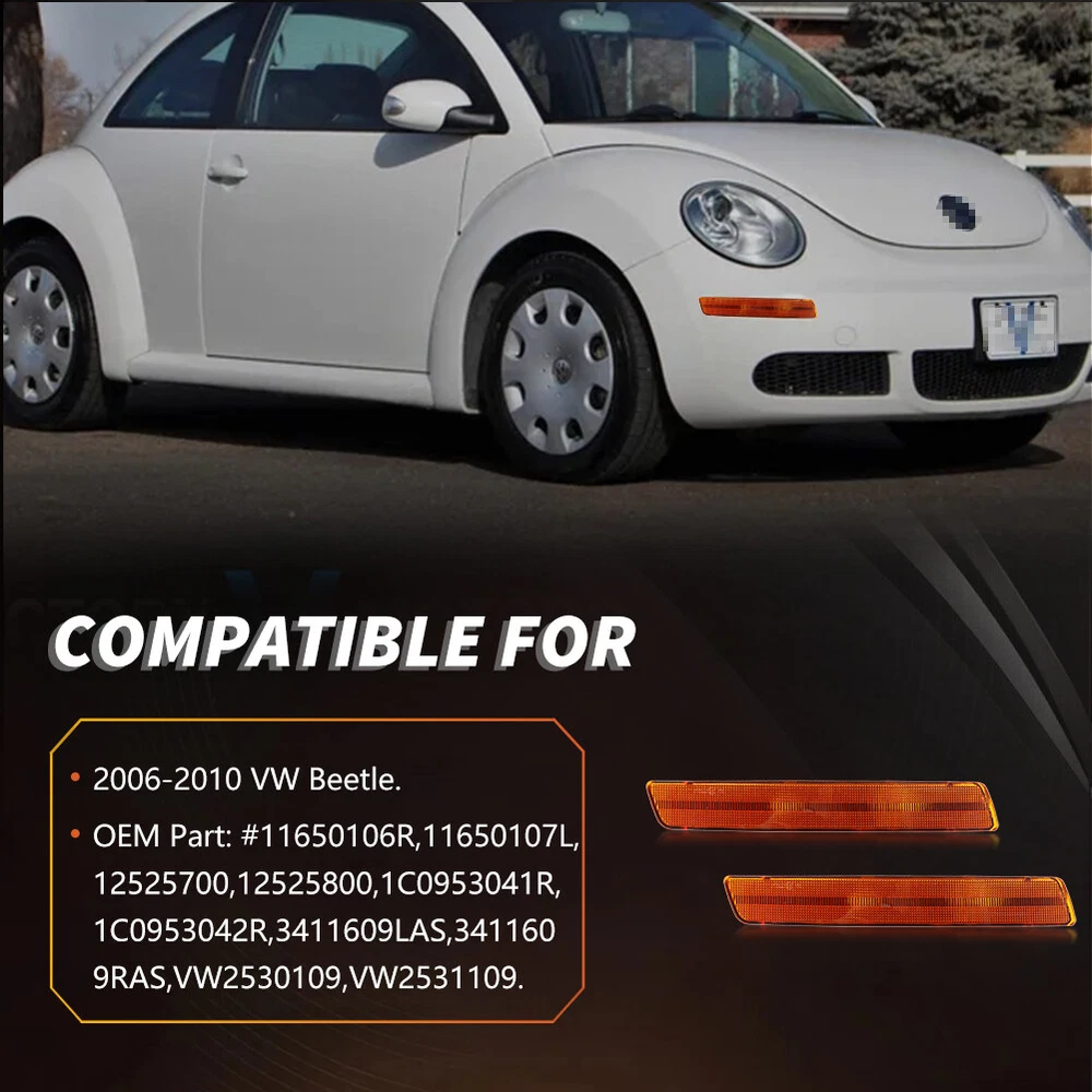 Product Detail Copyright©MotoringPlus Details This page features One Pair (2 Pieces) OEM-Spec Amber Lens Front Bumper Turn Signal Lights Kit For 2006-2010 Volkswagen Beetle These lamps are made with high-quality Polymethy l Methacrylate (PMMA) and Polycarbonate (PC) plastics No modification required! Each piece is easy to install with an OEM fit, Instantly transform your car and give it a modern and trendy appearance and feel! Note: Bulbs & socket adapters are NOT included Specifications: 100% Brand new and quality Lens Color: Amber A complete set of two lamps, replacement for the driver side & passenger sides Compatible With 2006-2010 Volkswagen Beetle Directly replace or repair your car's front bumper turn signal lamps CE DOT SAE approved Application: For 2006 2007 2008 2009 2010 Volkswagen Beetle Replace OEM # 1C0953042R-PFM, 1C0953041R-PFM and Partslink#: VW2530109, VW2531109 Please make sure you have available space in your car for these lamps to fit before placing or der. Package include: 2PCS Driver & Passenger side Front Bumper Turn Signal Lights (Amber Lens) Installation: Direct replacement the OEM parts without any modification needed Note: Professional installation is highly recommended! Returns Policy Shipping Policy Payment Method About US Contact Us Returns Policy Please check actual stock bulb model & housing size before purchasing replacement bulbs. Compatibility list on eBay listing is not a complete list and it is a known issue that there are errors on it. Half year warranty from the purchased date. Please contact us via ebay message before returning the defectived item. Our warranty does not extended to any products that are physically damaged or that are not under normal operating conditions as a result of misuse or improper installation on the buyers/user's part. Return items should include the original packaging and all accessories. Buyers MUST contact us for the returning address. In all cases, buyers pay shipping fees at their own cost to return products for exchange or refund. We will be responsible for the postage of replacements. Refund will be made upon receipt of the returned item. Our goal is to make sure you are a happy buyer and pleasant shopping with us. If you have any problems, please contact us immediately before leaving us any negative or neutral feedback. We understand the concerns and frustrations you might have, and will do our endeavor to resolve the issues. Please give us the opportunity to resolve any problem. Shipping Policy Item will be shipped from China / Hongkong Post by Standard International Post. All orders will be shipped to buyer's paypal shipping address within 24 hours after receiving your verified payment (Excluding Weekends and Public Holidays) International order may takes about 15-25 business day delivery time for most countries. Transactions on weekends or public holidays,item will be sent later on work time. Payment Method We accept Paypal ONLY. Unpaid transaction will be cancelled after 8 days About US Contact Us We are dedicated to providing you the best shopping experience and high quality items at a very low price. If you are satisfied with our service,Please remember to leave us 5 STAR for All Detailed Seller Ratings If you found any problem/issue of our merchandise/service,please let us know before leaving any negative feedback! Please feel free to contact us if you have any question. Any message will be replied within 24 hours. We will try our best to help! Home Payment Shipping About us Contact us Copyright©MotoringPlus Home Payment Shipping About us Contact us Store Categories Store Categories SIDE MARKER LIGHT TURN SIGNAL LIGHT TAIL BRAKE LIGHT LICENSE PLATE LIGHT DECODER OTHERS Other Product Detail Copyright©OFFKAT Why Buy From Us Why Buy From Us Details This page features One Pair (2 Pieces) OEM-Spec Amber Lens Front Bumper Turn Signal Lights Kit For 2006-2010 Volkswagen Beetle These lamps are made with high-quality Polymethy l Methacrylate (PMMA) and Polycarbonate (PC) plastics No modification required! Each piece is easy to install with an OEM fit, Instantly transform your car and give it a modern and trendy appearance and feel! Note: Bulbs & socket adapters are NOT included Specifications: 100% Brand new and quality Lens Color: Amber A complete set of two lamps, replacement for the driver side & passenger sides Compatible With 2006-2010 Volkswagen Beetle Directly replace or repair your car's front bumper turn signal lamps CE DOT SAE approved Application: For 2006 2007 2008 2009 2010 Volkswagen Beetle Replace OEM # 1C0953042R-PFM, 1C0953041R-PFM and Partslink#: VW2530109, VW2531109 Please make sure you have available space in your car for these lamps to fit before placing or der. Package include: 2PCS Driver & Passenger side Front Bumper Turn Signal Lights (Amber Lens) Installation: Direct replacement the OEM parts without any modification needed Note: Professional installation is highly recommended! Returns Policy Shipping Policy Payment Method About US Contact Us Returns Policy Our 60-day Satisfaction Guarantee assures our customers that they will receive all orders promptly and exactly as described. In addition, it allows customers to return new and unused products in their original factory condition for any reason within 60 days from the date of purchase. Buyers are responsible for appropriate packing, returning shipping cost, insurance and returning the item in "new" condition. Used items will not be accepted for return. We will replace the returning item with an identical item, issue a full store credit or a full refund. Our goal is to make sure you are a happy buyer and pleasant shopping with us. If you have any problems, please contact us immediately before leaving us any negative or neutral feedback. We understand the concerns and frustrations you might have, and will do our endeavor to resolve the issues. Please give us the opportunity to resolve any problem. Shipping Policy We only ship to paypal con