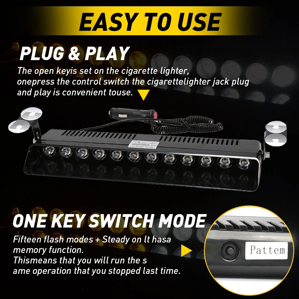12-LED Car Strobe Light Emergency Flash Windshield Warning Lamps12V Amber/White Specifications: Voltage:12V LED quantity: 12 LED per unit Light color:White/Amber Waterproof grade:IP67 Service life:50000h+ Placement on vehicle: Car, Truck Front and Rear Visor Dashboard Features: *Special design Ultra slim, super bright with surface mount. *Brightness Powered by 12 high intensity LEDs with optical lens to play a warning role and improve the driving safety. *Functions Anti-collision, anti-dust and splash-proof. *Energy-saving Amber/White 24 LED Car Truck Windshield Dash Strobe Light Bar Warning Flash Lamp 12-LED Car Strobe Light Emergency Flash Windshield Warning Lamps12V Amber/White Specifications: Voltage:12V LED quantity: 12 LED per unit Light color:White/Amber Waterproof grade:IP67 Service life:50000h+ Placement on vehicle: Car, Truck Front and Rear Visor Dashboard Features: *Special design Ultra slim, super bright with surface mount. *Brightness Powered by 12 high intensity LEDs with optical lens to play a warning role and improve the driving safety. *Functions Anti-collision, anti-dust and splash-proof. *Energy-saving Low power consumption without pollution, noise, electronic interference, quick instant start-up time. Packaging include: Windshield Warning light*1 Item Specifics Brand AUXITO Lighting Technology LED Suitable For Emergency Light Number of Bulbs 1 Material ABS Type Strobe Flashing Light Bars Features TRUCK ACCESSORIES Manufacturer Part Number BSD-12LED-WY Color Temperature 3000K Voltage 12 V Light Color White Universal Fitment Yes Bulb Color Amber/White Flash Pattern 14 different flash mode Manufacturer Warranty 1 Year Bulb Life Hours Up to 50,000 Hours Placement on Vehicle Front, Rear, Left, Right Model With Suction Cup Mount Superseded Part Number 14 Different Flashing Patterns FAQ ♥ If you have a decoding problem or any other problems, please contact us first, we will help you with it. We will reply you within 24 hours in working days. I'm a new seller, thanks a lot for your trust and convince! I will serve you with all my heart. ♥ Q1: Will this bulb fit my vehicle? A: We can match almost any vehicle to one of our bulb sizes. eBay only lets us include some vehicle fitments per listing, but if your vehicle does not show up on the compatibility table at the top of our listings, welcome you to contact us for free consulation before purchasing a product. Q2: My item has not arrived, what's taking so long? A: Sometimes items take longer than expected, especially if it’s going far or to rural area. Check with your post office to see if your item has been held up. Sometimes Royal Mail will not update a tracking number until it has arrived at its destination. If your item still don't arrive after a few days, let us know so we can double check for you and help solve it asap. Q3: My bulbs won't fit, help! A: Special bulb holder may be required. See if you can take the holder from the stock bulb. If not, let us know. The bulb size may be wrong, double check the item you received with the item you ordered. Do you have an aftermarket lighting housing? These may not be perfectly fitted for aftermarket bulbs and will require some manual modifications. Q4: Neither side lighting up? Both sides flicker, hyper flash, or work inconsistantly. A:Check the light fuses, and then check the ballast plugs to insure correct installation. If this doesn't work, there may be a voltage problem with the vehicle. You probably just need a relay or capacitor. Even though some bulbs are builtin resistors, they may still need a decoder. Pay & Ship (1). We gladly accepts payment via PayPal, We will ship your item(s) within 24 hours. (2). Before payment, please keep the consistency of Paypal address and ebay address. (3). Quantity orders are welcome! Returns (1). We offer 60 days free return policy. Please contact us within 60 days from the date you receive your order if you have any issues with the product or want return. Refund will be send after we got your resend package. (2). All returned items should be in the original packaging , return tracking information should be provided . Contact Us (1).Negative feedback will not help resolve any problems you have, please contact us via eBay messages before leaving negative feedback , our customer service will make best effort to help you with the issues. (2).We maintain high standards of excellenceand strive for 100% customer satisfaction! Feedback is very important to us. We request that you contact us immediately before you give us neutral or negative feedback, so that we can satisfactorily address your concerns. About us We're professional in car and motorcycle accessories, especially in LED bulbs. We have our own factory and R&D team. Our belief is to sell top quality items that fit your car and serve you with our heart. Anything please feel free to contact us! Our customer service is very responsibility. Come and follow us! DESCRIPTION NEW ARRIVED HOT SALE CONTACT US SAVE US Store Category Store Home Other Hot Item LED License Plate Light For 88-00 Chevy C/K 1500 2500 3500 BRIGHT WHITE Tag Lamp USD 13.99 RGB LED Car Neon Light Chassis Atmosphere Lamp Kit For Honda Nissan Subaru Audi USD 32.99 5Pcs FORD F350 F150 For F250 Roof Top 1973-1997 Cab Lights Marker Amber Lights USD 27.54 LED License Plate Tag Lights For 2014-18 Chevy Silverado GMC Sierra 6000K White USD 14.89 1000pcs Headliner Star Light kit Roof Twinkle Ceiling Light Optic Fiber Home Car USD 72.99 New List Item Pair Bumper Reflector Set For 2006-2013 Lexus IS IS250 IS350 Rear Left & Right USD 18.99 Wiper Turn Signal Lever Switch Cruise For Control Chevy GMC Tahoe Suburban C1500 USD 39.99 For 06-14 Challenger Charger Dodge / Chrysler 18-SMD 300 LED License Plate Light USD 11.99 H8 LED Fog Light Bulb 6500K Super Bright White 30000LM Save Energy New Hot USD 19.99 4X Smoke Front Rear Side Marker Light Housing Kit For Chevrolet Camaro 2010-2015 USD 38.99 Picture Amber/White 24 LED Car Truck Wind