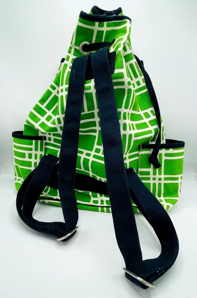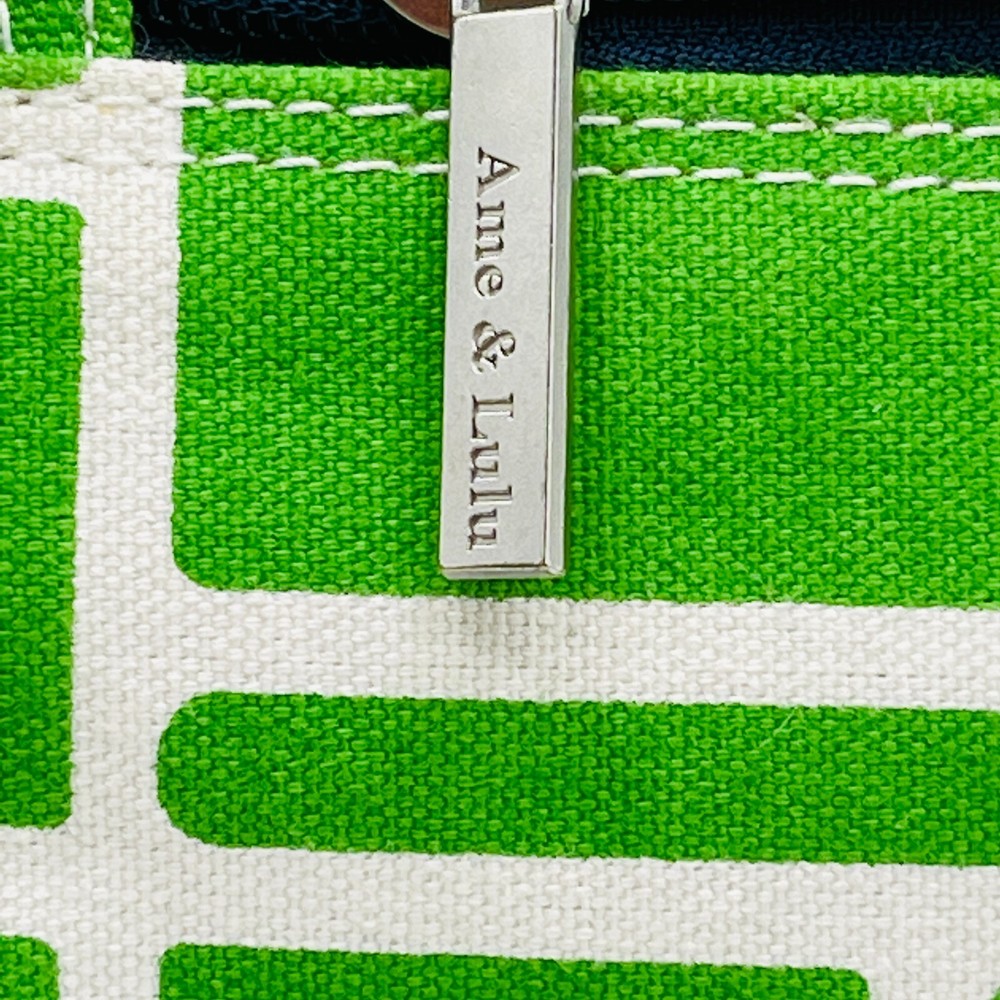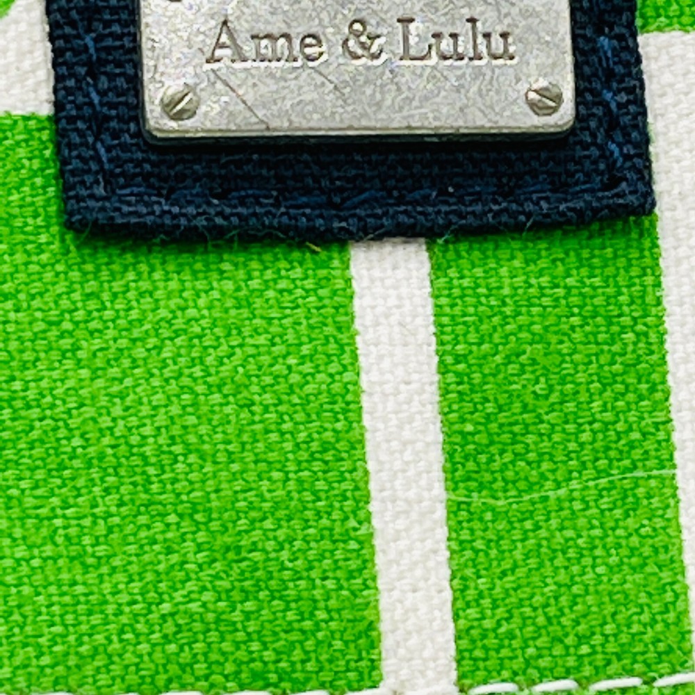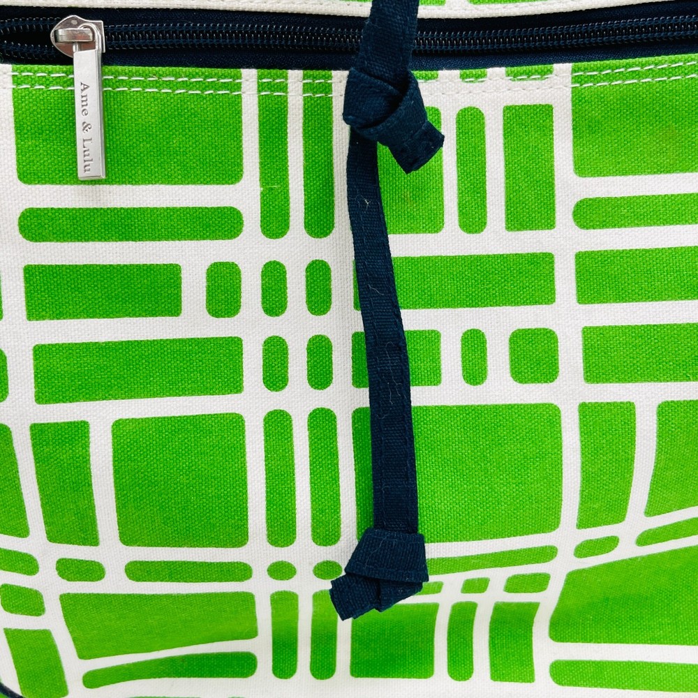 Size: 20x17 Color: Green, white, navy blue. Ame & Lulu Tennis Racquet Bag, made of heavy weight sturdy canvas. Minor scuffs and discoloration noted, please see photos. Sold as shown. Please use pictures as an inclusive part of the description. Colors can vary on monitors. Sold as shown. Happy to combine shipping with other items currently listed. We happily ship internationally. We are celebrating 22+ years on eBay & are happy to offer many varied items for collectors & consumers alike. New items listed daily.
