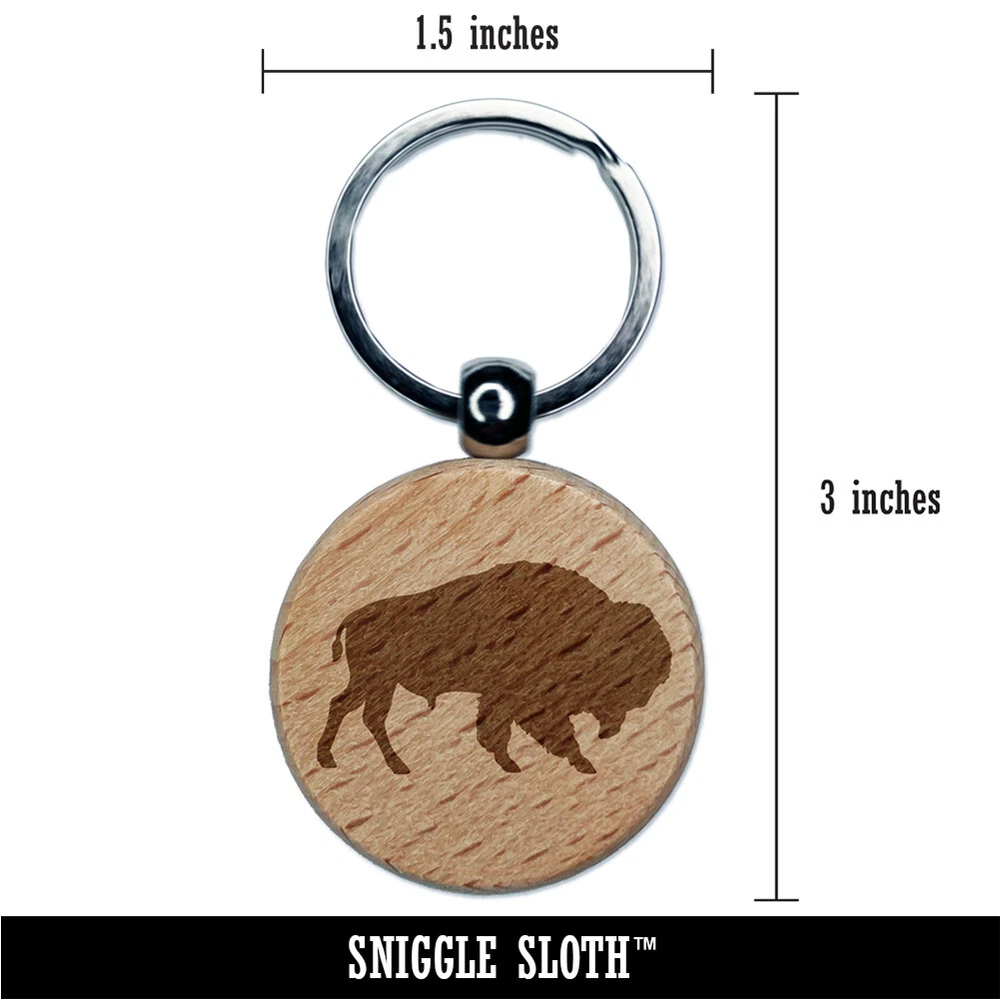 American Buffalo Bison Solid Engraved Wood Round Keychain Tag Charm