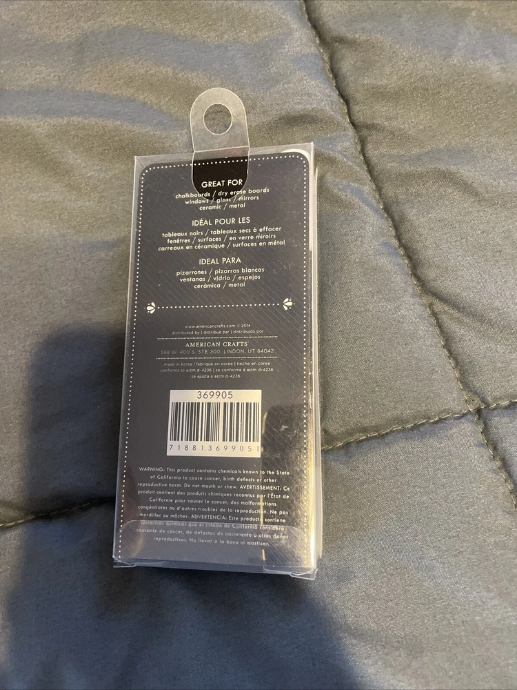 Great chalk markers that write very clean. Bought two packs last year and only used the one pack so im selling the other This set of five American Crafts Erasable Chalk Markers is perfect for any crafting project. The markers are designed with a multicolor tip, making them ideal for creating vibrant and eye-catching designs. They are made by TOMBOO, a trusted brand in the crafting industry, and are manufactured in China. These craft markers are perfect for use on a variety of surfaces, including paper, cardstock, and even fabric. They are easy to use and erase, making them a great choice for anyone who wants to add a pop of color to their crafts without worrying about permanence. This set is a great addition to any crafting supply collection and is sure to inspire creativity.