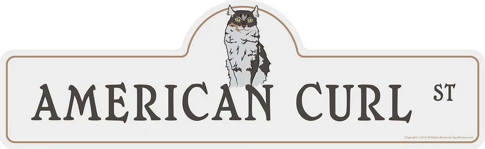 Get a fun American Curl Street sign for your home or office and show off your love for your favorite breed. Looking for a fun, cute street sign to hang on your cubicle or in your man cave ? If so, has all the cute, funny, hilarious, and even work-related signs you re looking for! Something for Everyone We ve got a wide range of American-made signs just like this American Curl sign that will remind you of your best friend, make others smile, or Just let everyone around know you are a real cat lover. Colorful and Durable street signs are crafted with specialty inks that perfectly highlight its colors and image are printed directly onto outdoor-durable plastic making this sign very scratch resistant. And because they re safe for indoor and outdoor use, you can stick on your patio, in the living room, or anywhere else you want to get people smiling and talking about how much they love cats. Product Details: Stoner Street Sign Pre-Cut Mounting Holes Indoor and Outdoor Use Rust and Fade Resistant -Sided Patented Scratch Resistant Ink Dimension: 8 x 24 Made in the USA Outdoor Durable Plastic Click Add to Cart to get your American Curl sign today and smile each time you pass by! SIZE - 8" X 24" – Good for decorating a work space or hanging in a den, this Cat street sign also makes a great gift. Crisp, Clear Image – This sign features a high-definition image and a matte finish that pops with color and fun imagination. Quick & Easy Mount – Comes with pre-cut mounting holes for hanging