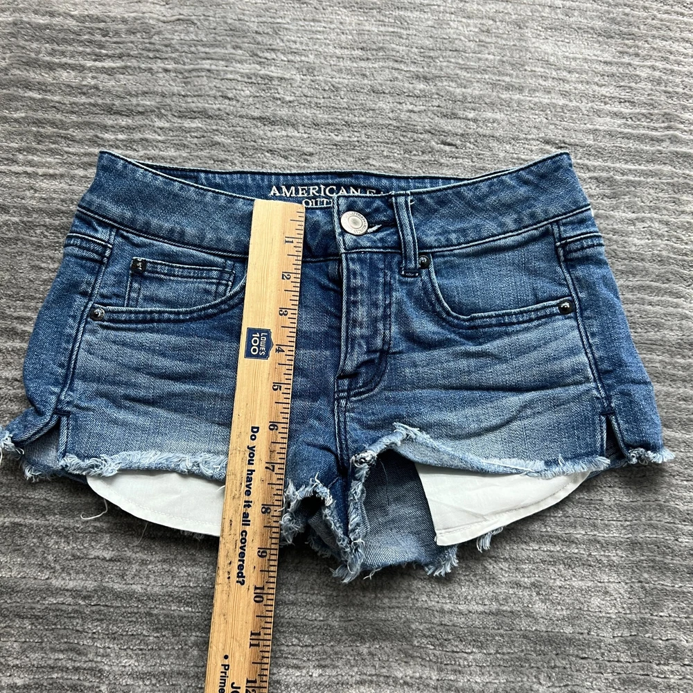 American Eagle Jean Shorts Size 2 Womens Shortie Super Stretch Blue Denim Please View Photos Closely. Please note, item measurements are approximate and in the photos. Items are carefully inspected and sealed after photos, so we cannot check additional measurements or details for you. All clothing has been cleaned/washed per eBay standards. We store our items in a pet and smoke free environment. We ship daily, and have 30 day returns. Thank you!