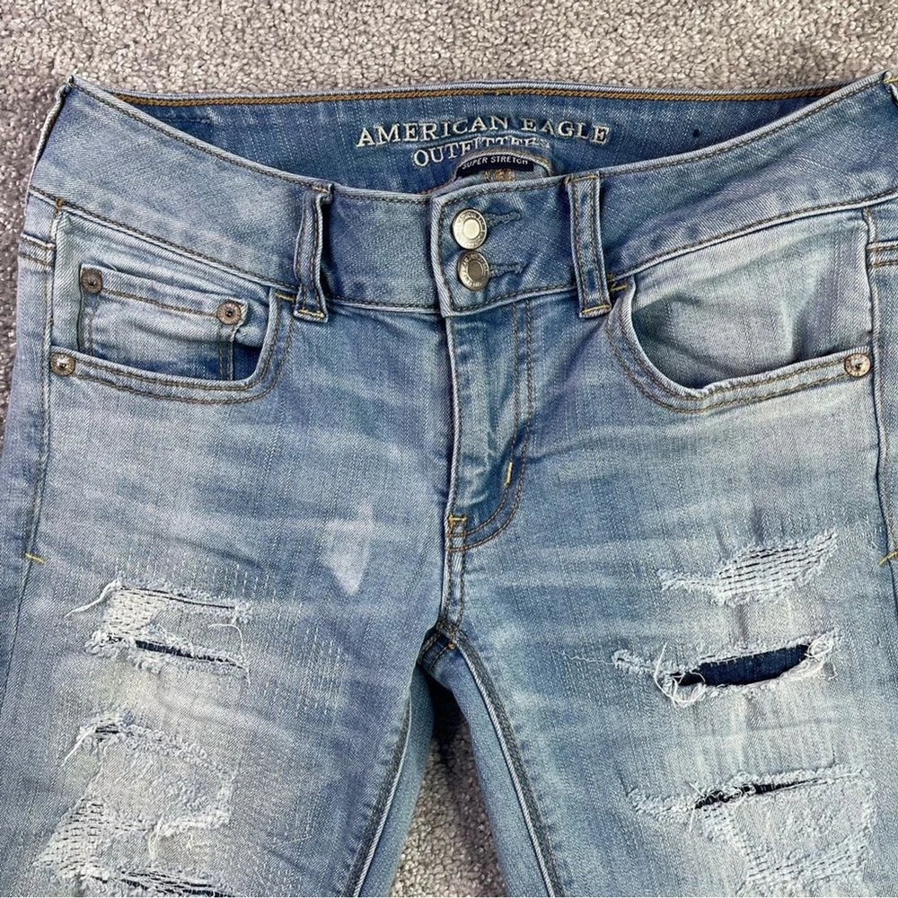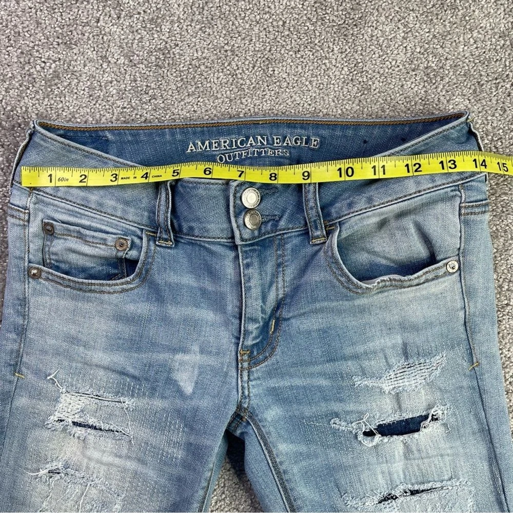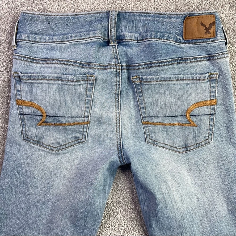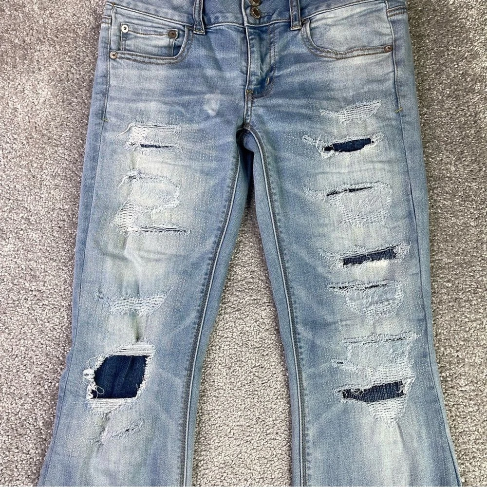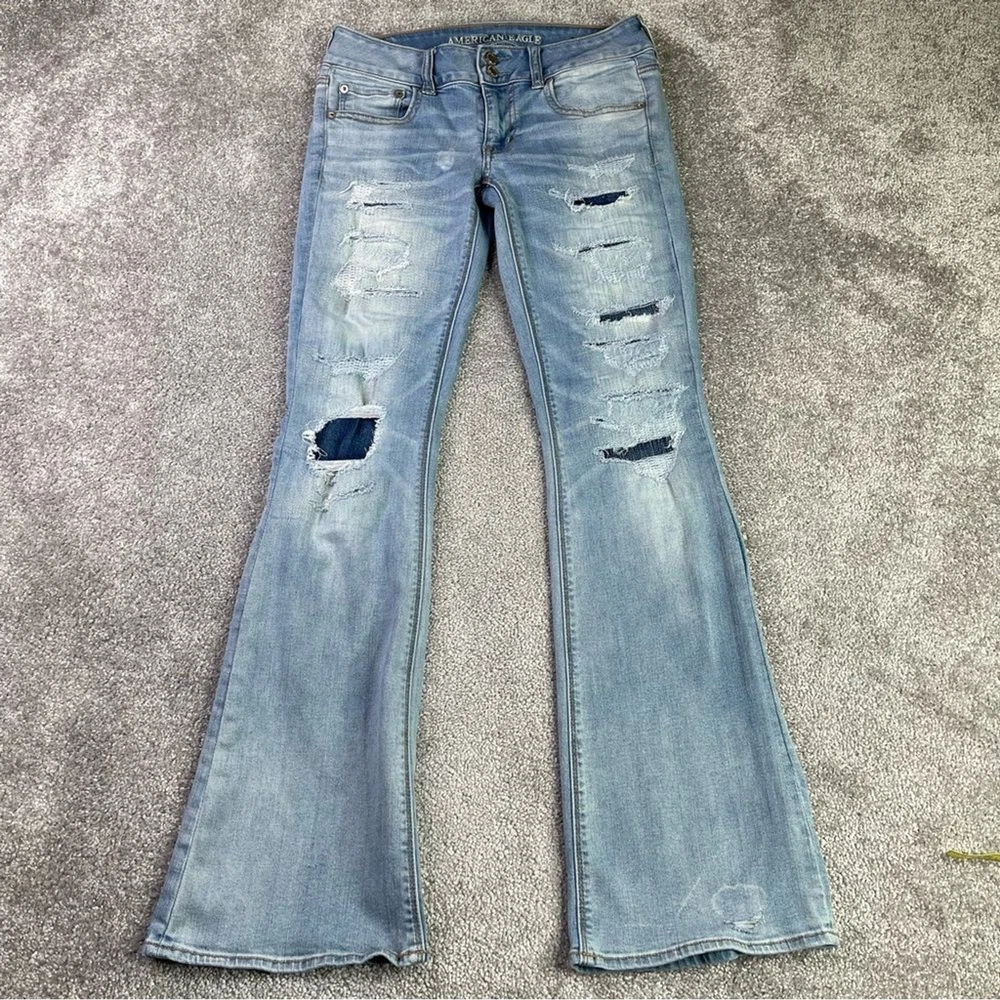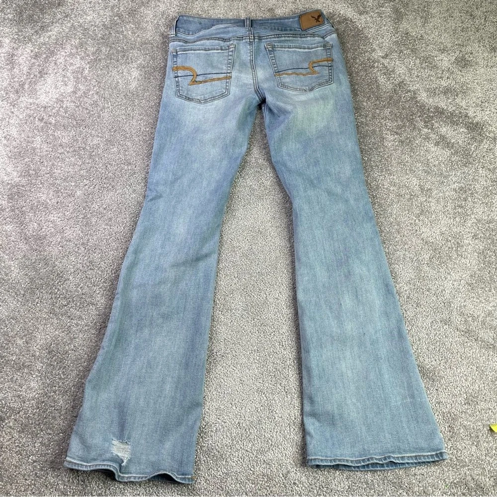 American Eagle Jeans Women's 4 Blue Flare Light Wash Low Rise Distressed Ripped