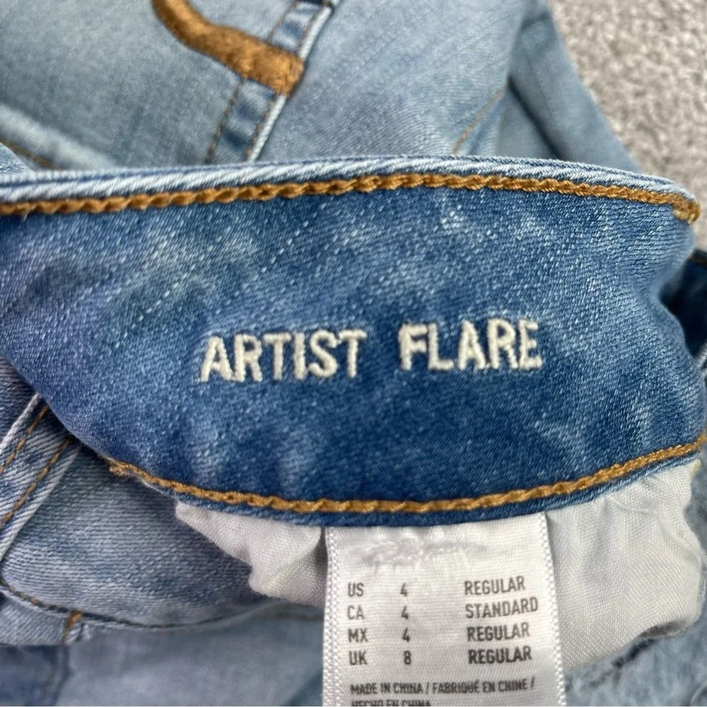Garment Care: Machine Washable Accents: Logo Inseam: 30.5 in Brand: American Eagle Outfitters Size: 4 Department: Women Model: American Eagle Artist Flare Features: Stretch, Pockets Fabric Type: Denim Size Type: Regular Fit: Regular Seller Notes: “In excellent, pre-owned condition with no flaws.” Country/Region of Manufacture: China Handmade: No Fabric Wash: Light Pattern: Solid Season: Winter, Summer, Spring, Fall Theme: Hipster, Bohemian, 90s, Preppy Material: Cotton Blend Style: Flared Waist Size: 27 in Type: Jeans Closure: Zip Color: Blue Rise: Low (6.5-8.5 in) Vintage: No Pocket Type: 5-Pocket Design Personalize: No