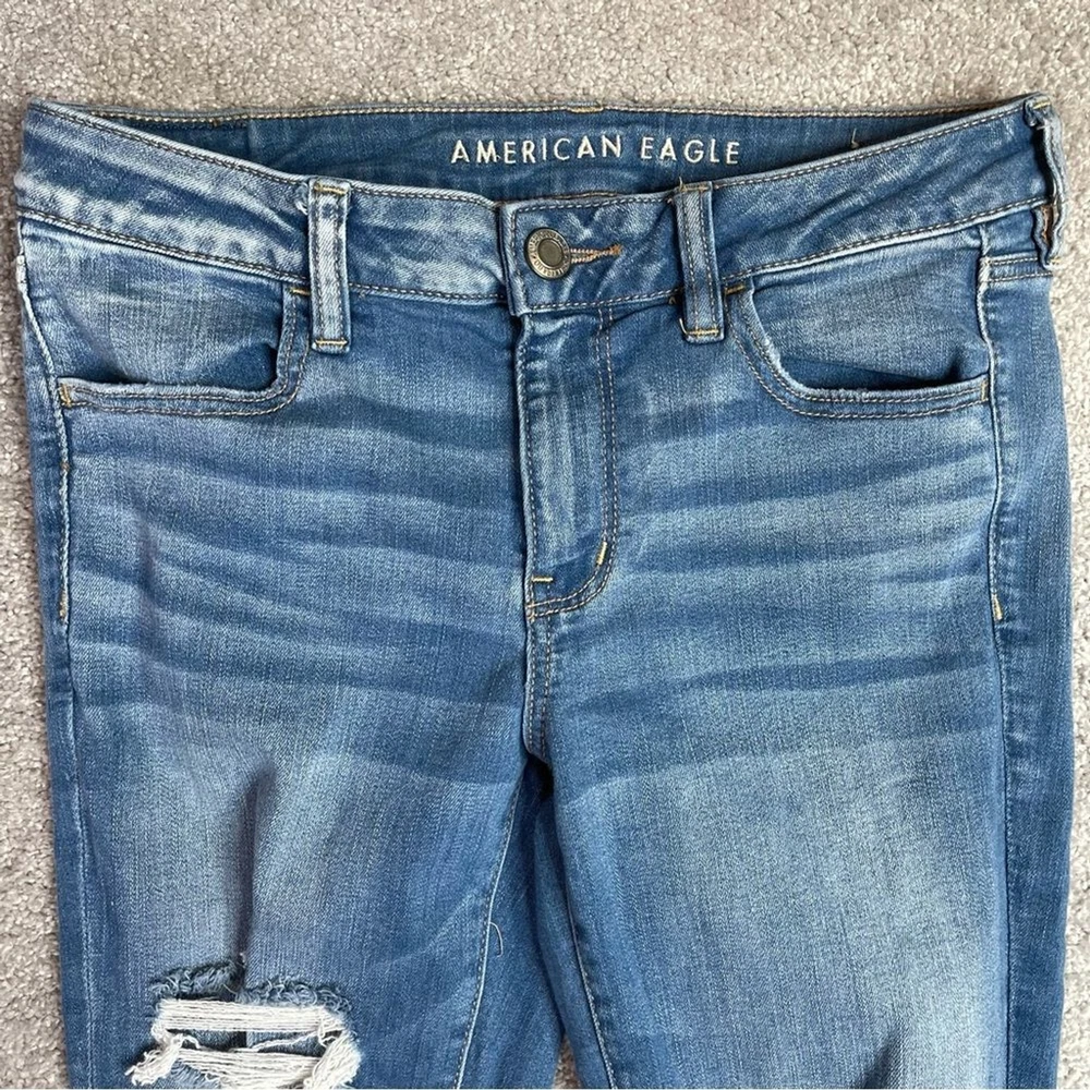 American Eagle Jeans Wome’s 10 X-Long Blue Skinny Mid-Rise Jegging Ripped