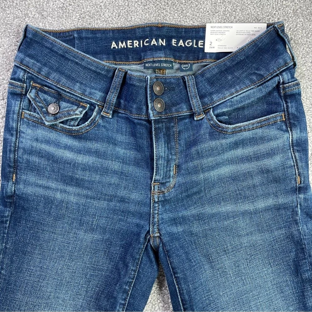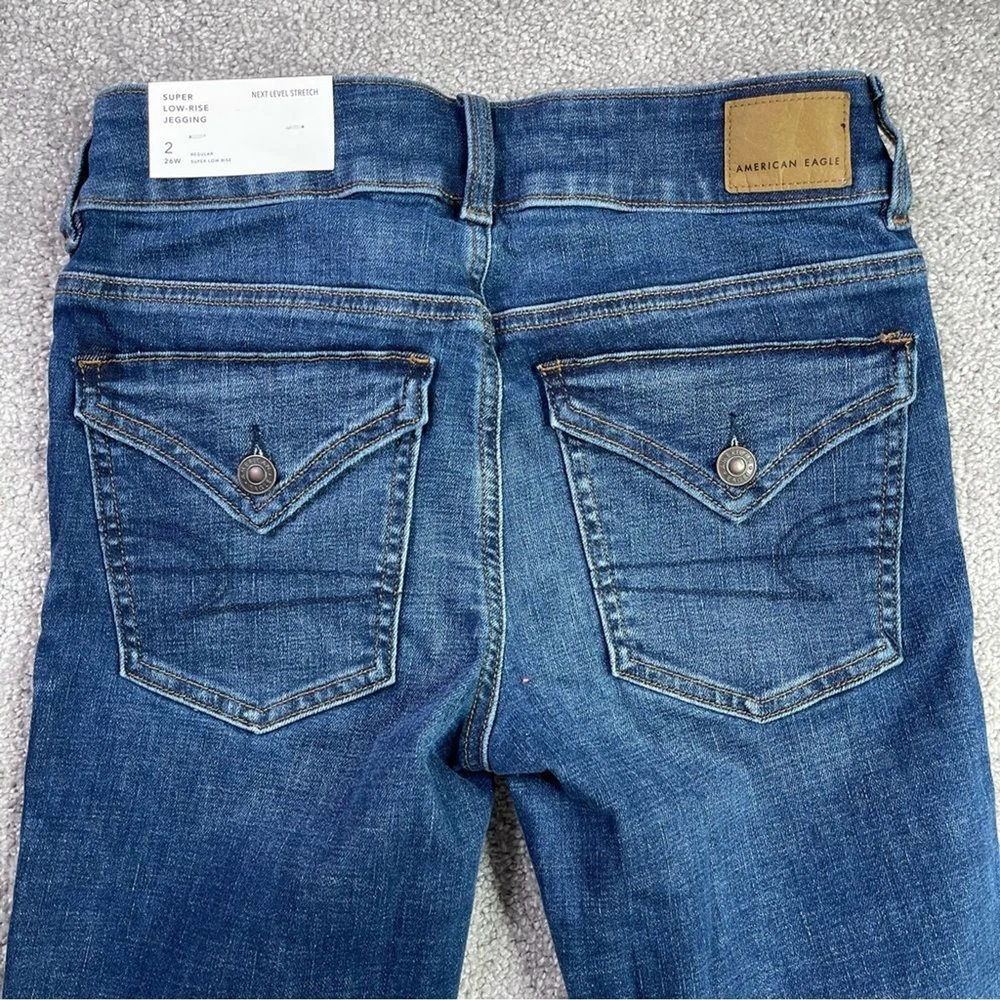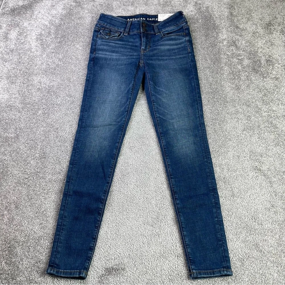 American Eagle Jeggings Women's 2 Blue Skinny Dark Wash Low-Rise Stretch Preppy