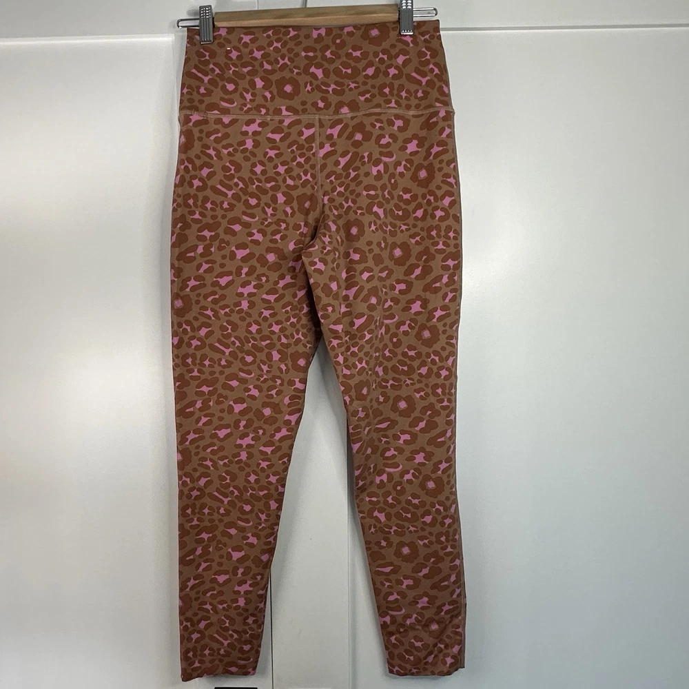Stylish leopard print leggings from American Eagle, with a pink and tan pattern. High waisted, full length. Material 72% Nylon, 28% Elastane Excellent used condition. No holes or stains. Non-smoking home. Athletic, sporty, retrosport, gym, workout, technical, performance, gorpcore, activewear, utility, practical, cargo, organic, natural, granola girl, hiking, camping, outdoor, running, jogging, walking, cycling, bicycling, peloton, weight lifting, basketball, track, field, practice, yoga, trail, pilates Athleisure, lounge, soft, relaxed, casual, around the house, jersey knit, comfy, comfortable, cozy, stretchy, stretch, plush, pajamas, PJs, sleepwear, funky, art to wear, artsy, colorful, wacky, bold, patterned, embellished, unique, avant garde, maximalist, eclectic, dopamine dressing, kitschy, art teacher, creative, unconventional, artisanal, artisan, quirky, zebra, cheetah