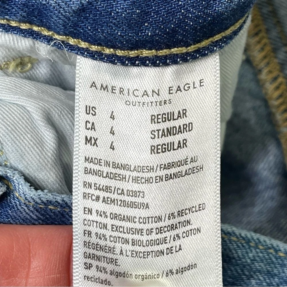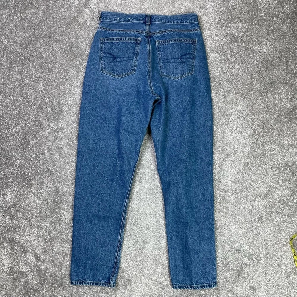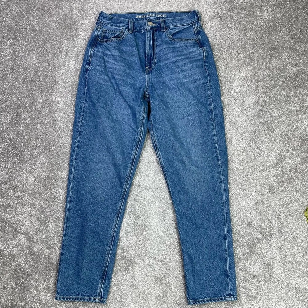 Handmade: No Size Type: Regular Garment Care: Machine Washable Personalize: No Fabric Wash: Medium Accents: Logo Type: Jeans Country/Region of Manufacture: Bangladesh Fit: Regular Size: 4 Brand: American Eagle Outfitters Model: American Eagle Mom Inseam: 27 in Style: Mom Waist Size: 27 in Rise: High (Greater than 10.5 in) Pattern: Solid Vintage: No Closure: Zip Fabric Type: Denim Season: Winter, Summer, Spring, Fall Features: Stretch, Pockets Pocket Type: 5-Pocket Design Theme: 90s, Grunge, Retro, Preppy Material: Cotton Department: Women Color: Blue